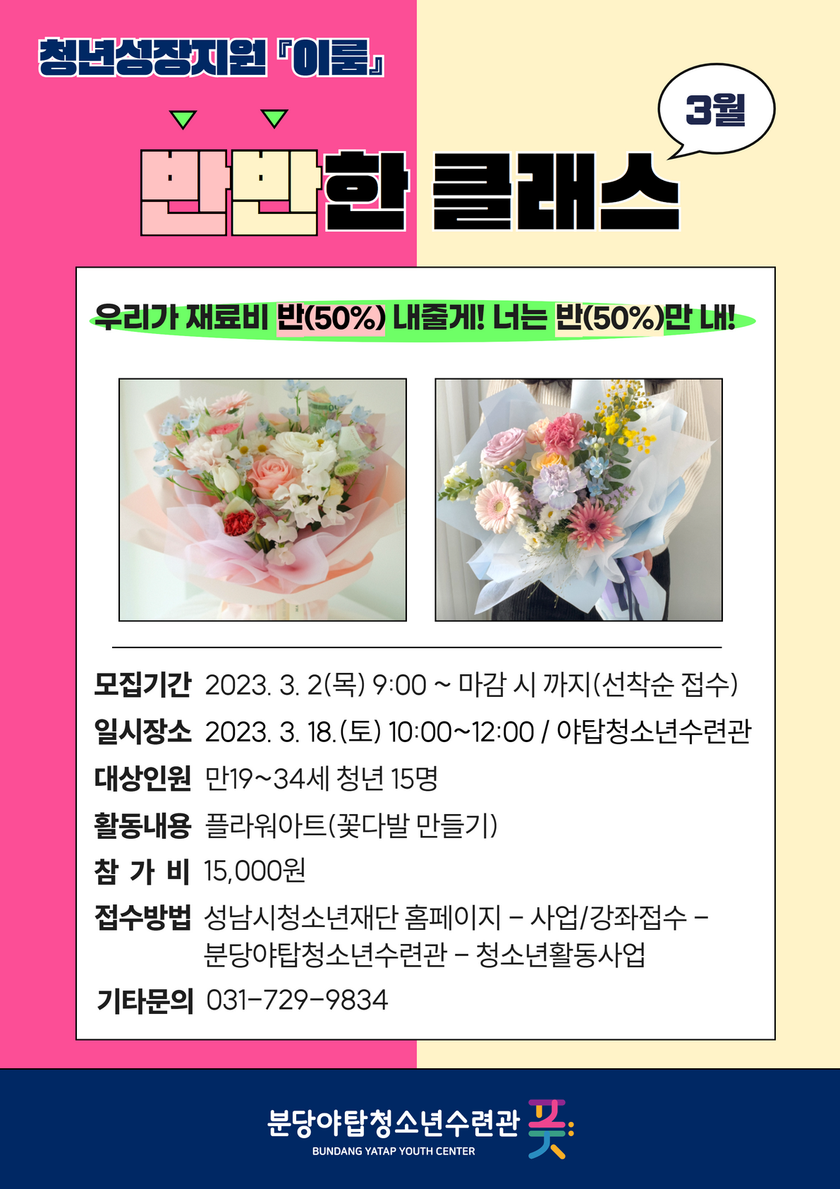 - 일시장소: 2023. 3. 18.(토) 10:00~12:00, 야탑청소년수련관 1층 풋별별 카페