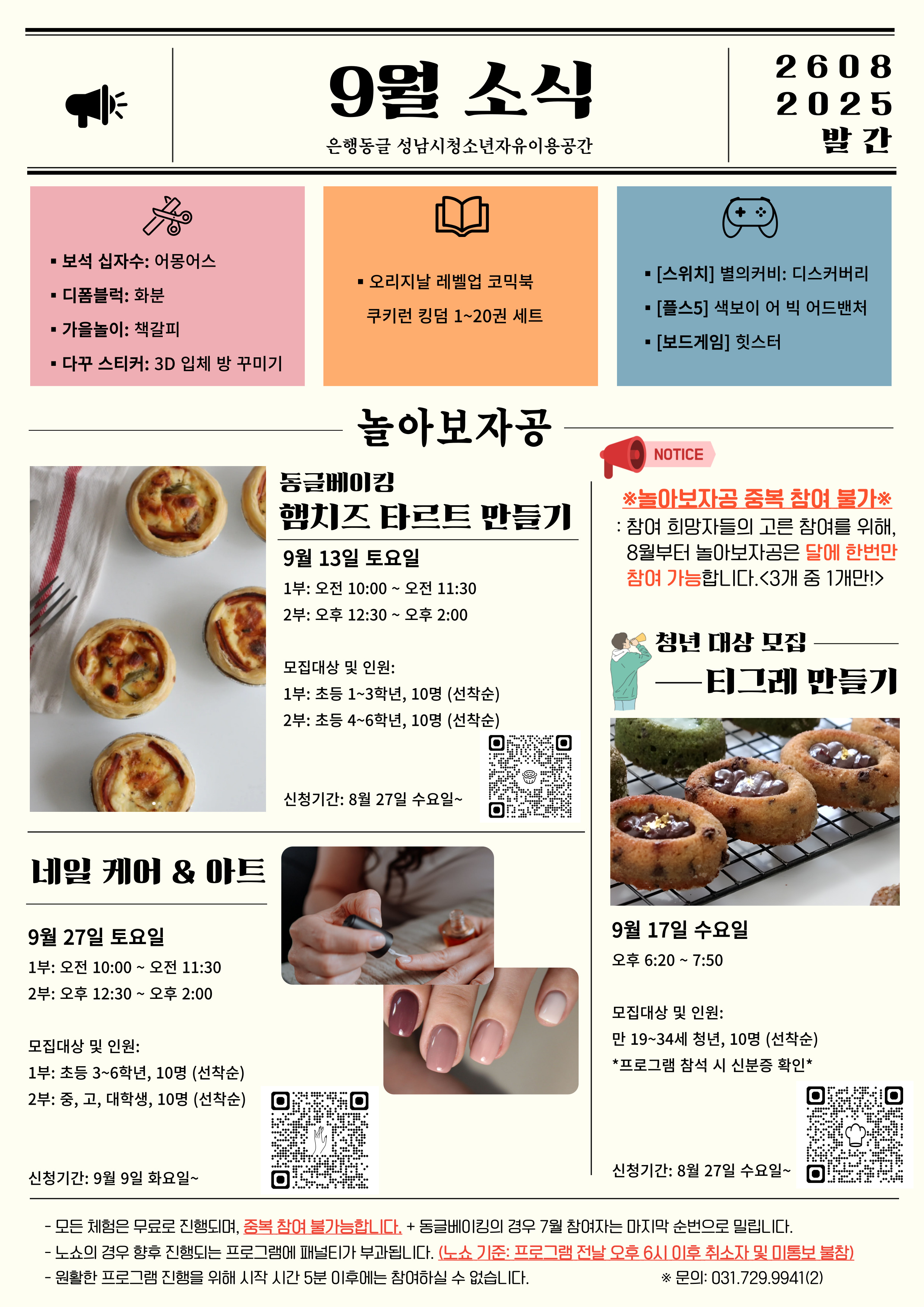 8월부터 놀아보자공은 달에 한번만 참여 가능합니다.<3개 중 1개만!>