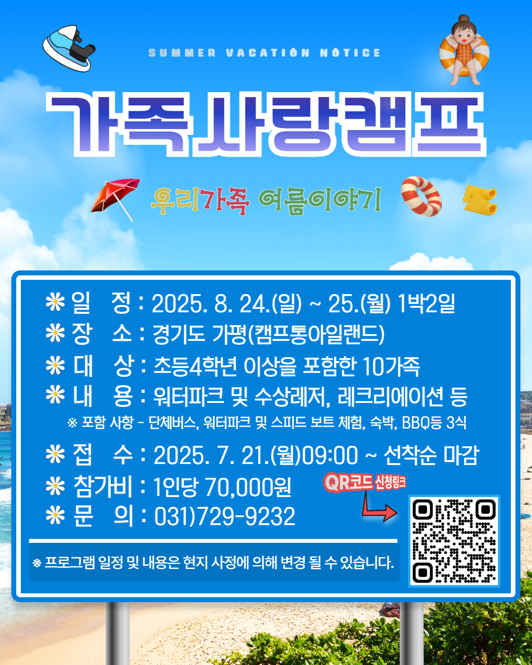 내 용 : 워터파크 및 가족친화활동(레크리에이션) 등