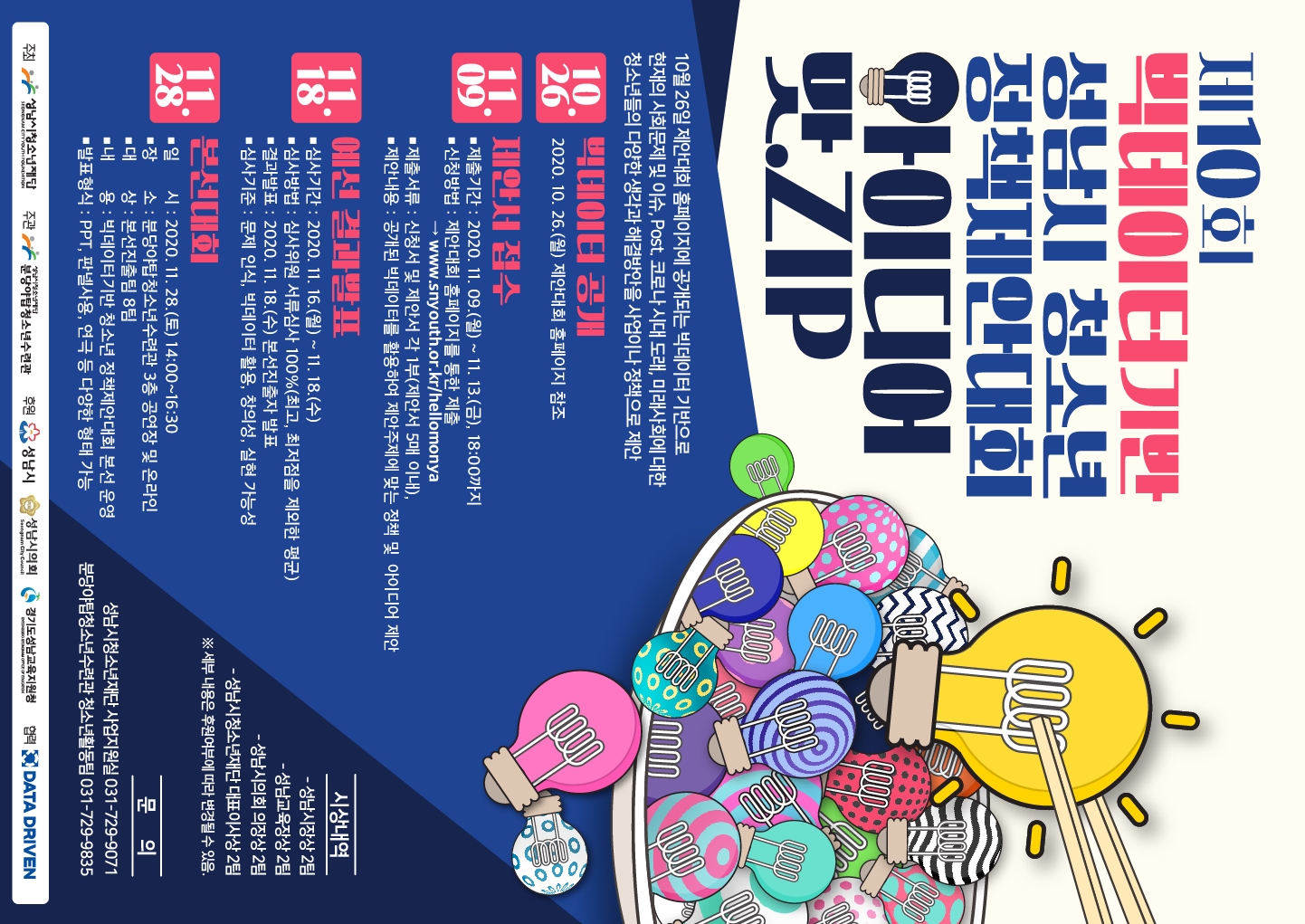성남시청소년재단(대표이사 진미석)은 오는 11월 28일, 제10회 빅데이터 기반 성남시청소년정책제안대회 「아이디어 맛.ZIP」을 개최한다.