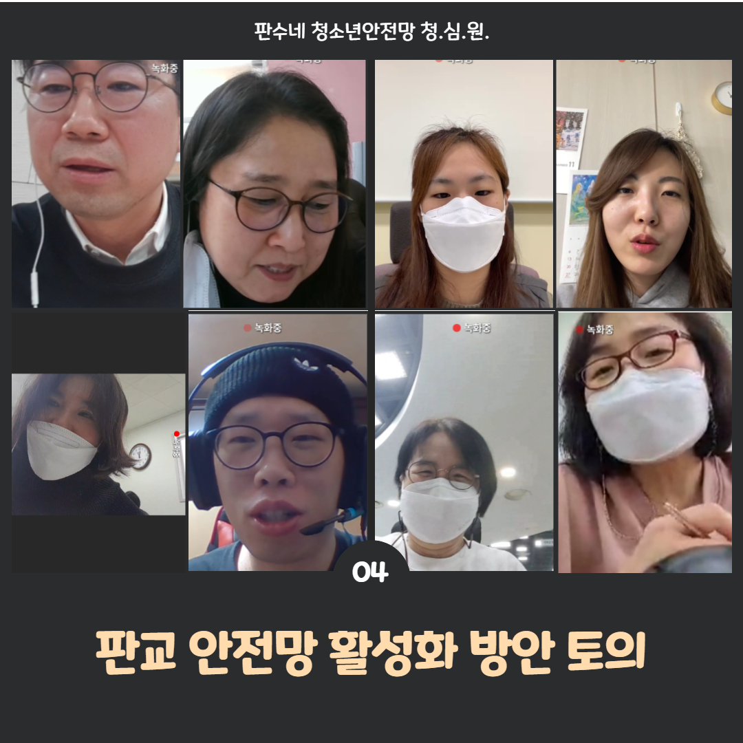 성남시청소년재단(대표이사 진미석) 분당판교청소년수련관은 지난 29일 판교지역 내 위기(가능) 청소년의 긴급지원을 위한 전문가로 구성된 청소년안전망 『청.심.원』의 간담회를 비대면 화상회의로 개최했다.
