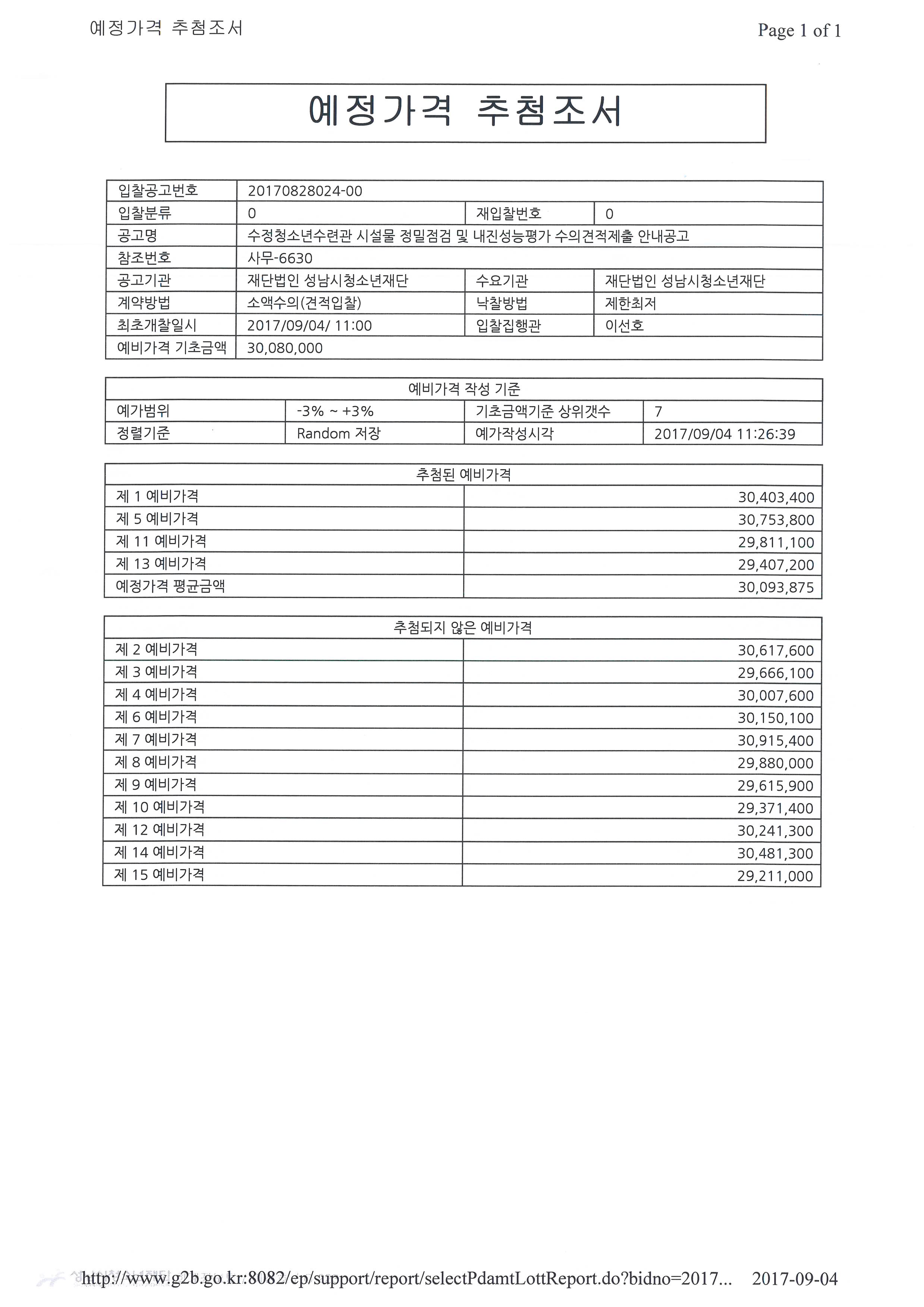 2. 예정가격 추첨조서 및 예비가격 추첨현황 각1부. 끝.