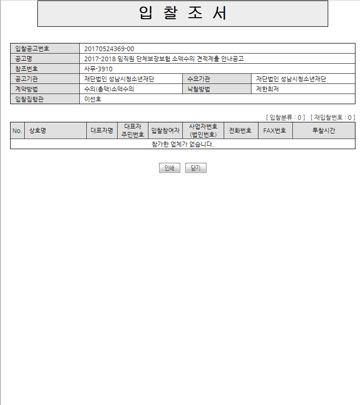 가. 견적건명: 2017-2018 임직원 단체보장보험 소액수의 견적제출 재공고