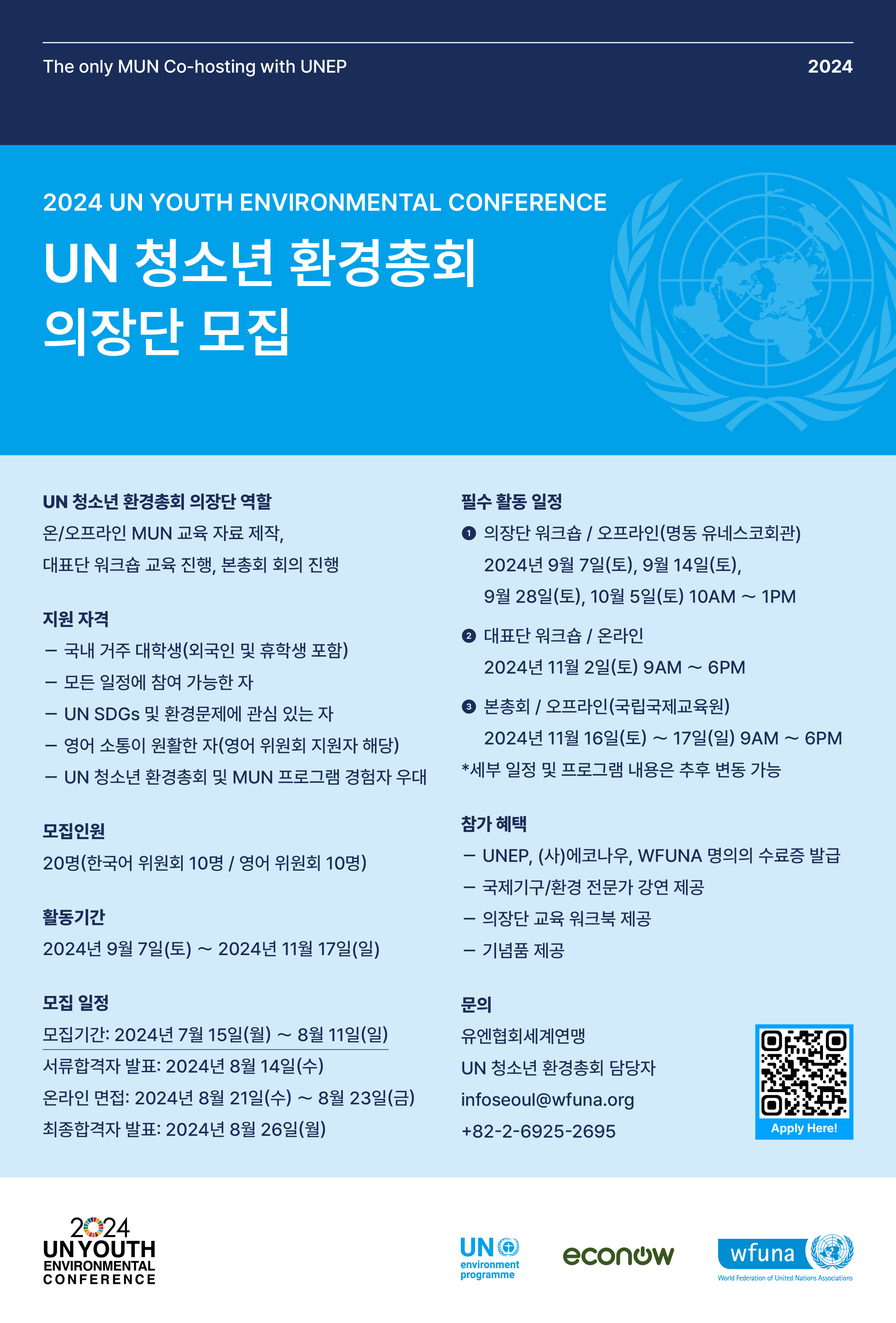 문의: 유엔협회세계연맹 UN 청소년 환경총회 담당자 infoseoul@wfuna.org