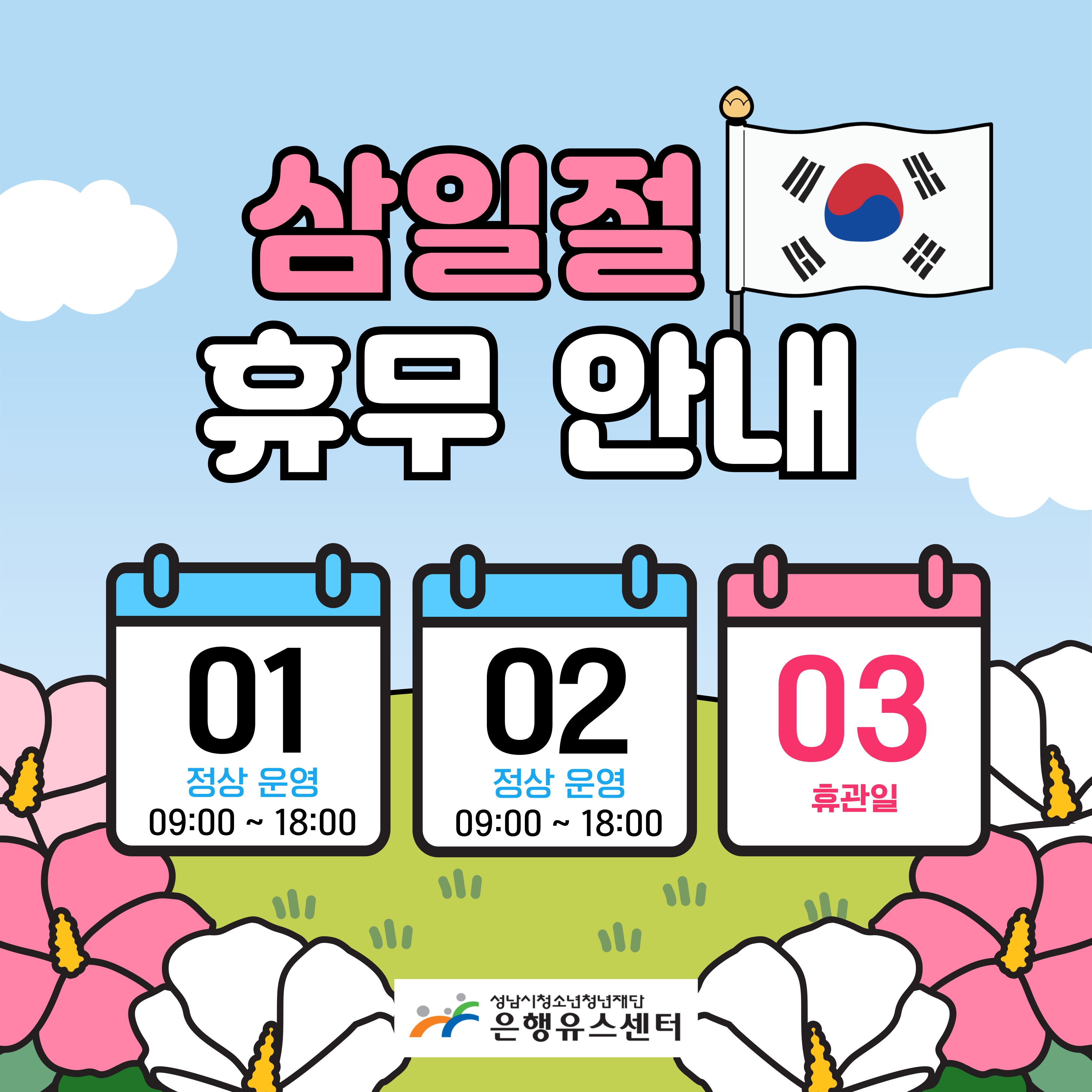 은행유스센터 휴무일(삼일절) 운영 안내 입니다!