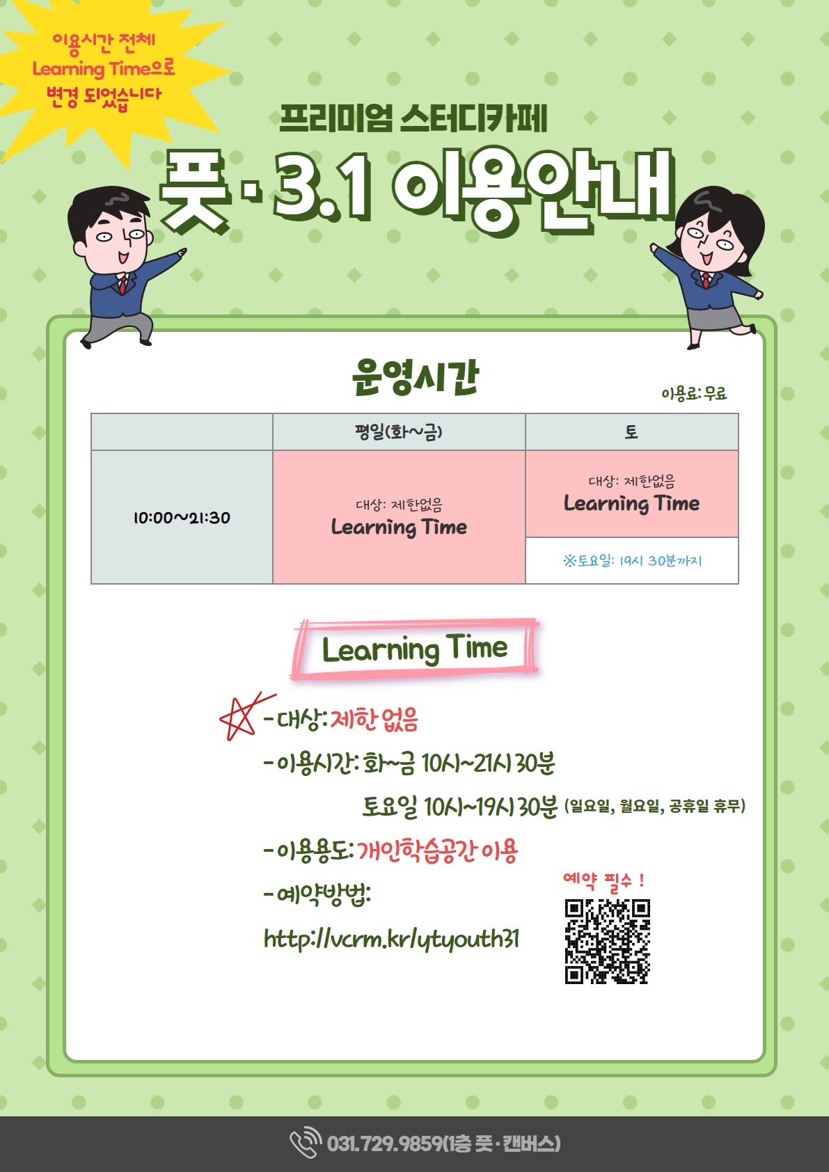 Learning Time(전연령 예약 가능) 예약하기 → http://vcrm.kr/ytyouth31