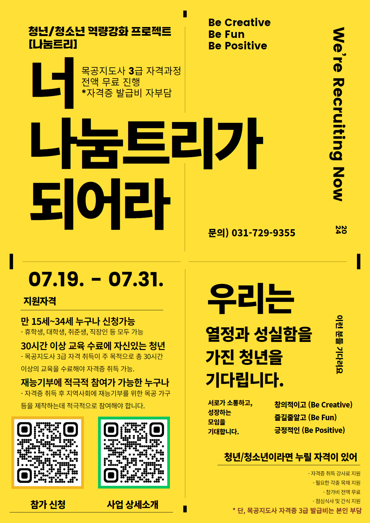 목공지도사 자격증을 취득하고, 사회에환원하고, 청년/청소년들과 소통하는 자리에 초대합니다.