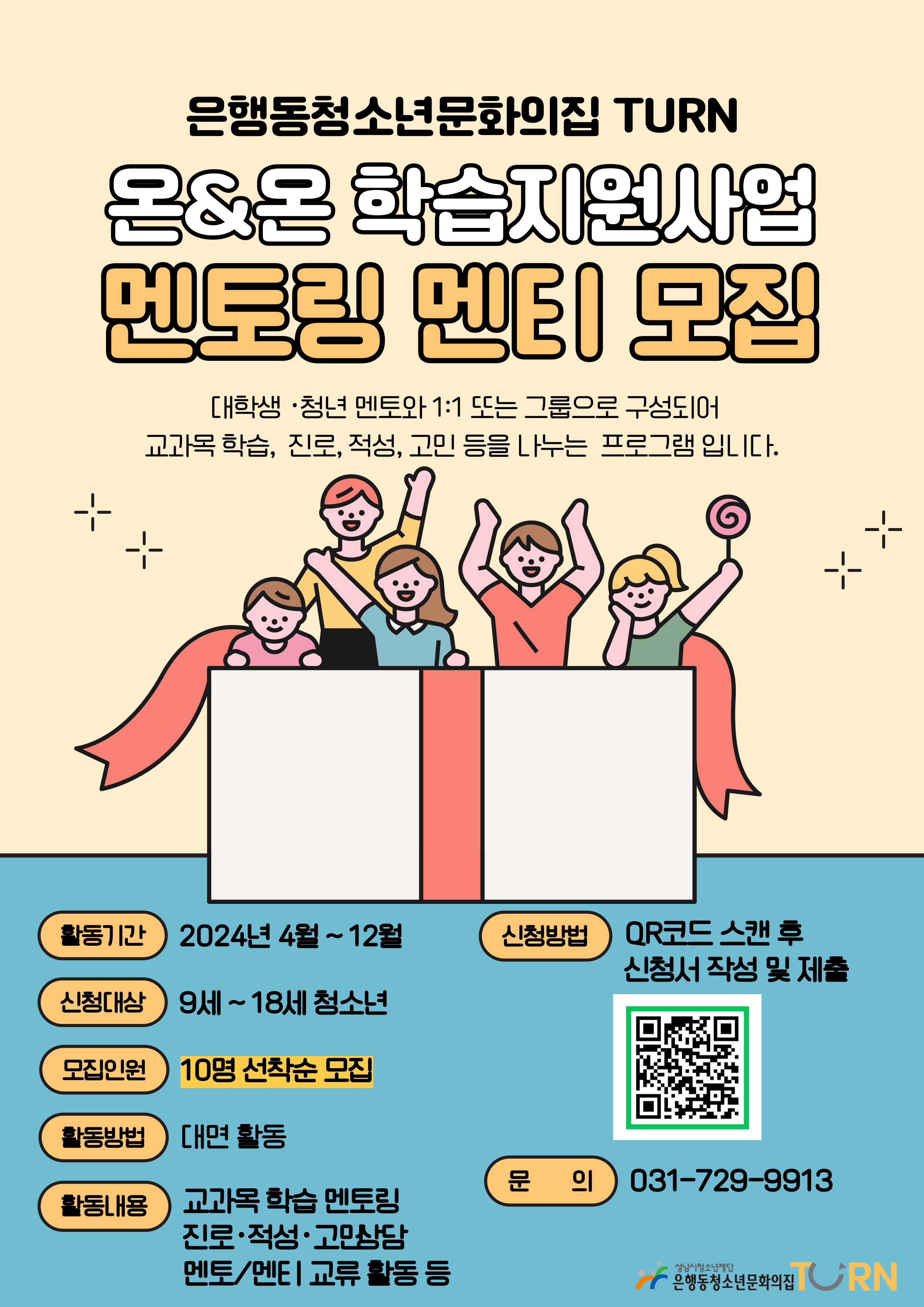 - 신청방법 : 온&온 학습지원사업 모집 안내 포스터 내 QR코드 스캔 후 신청서 작성 및 제출