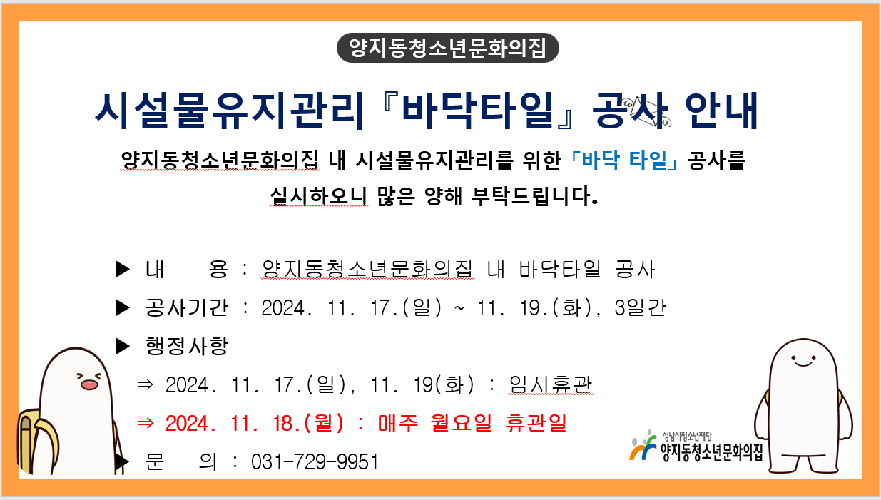 - 2024.11.17.(일), 11.19(화) : 임시휴관