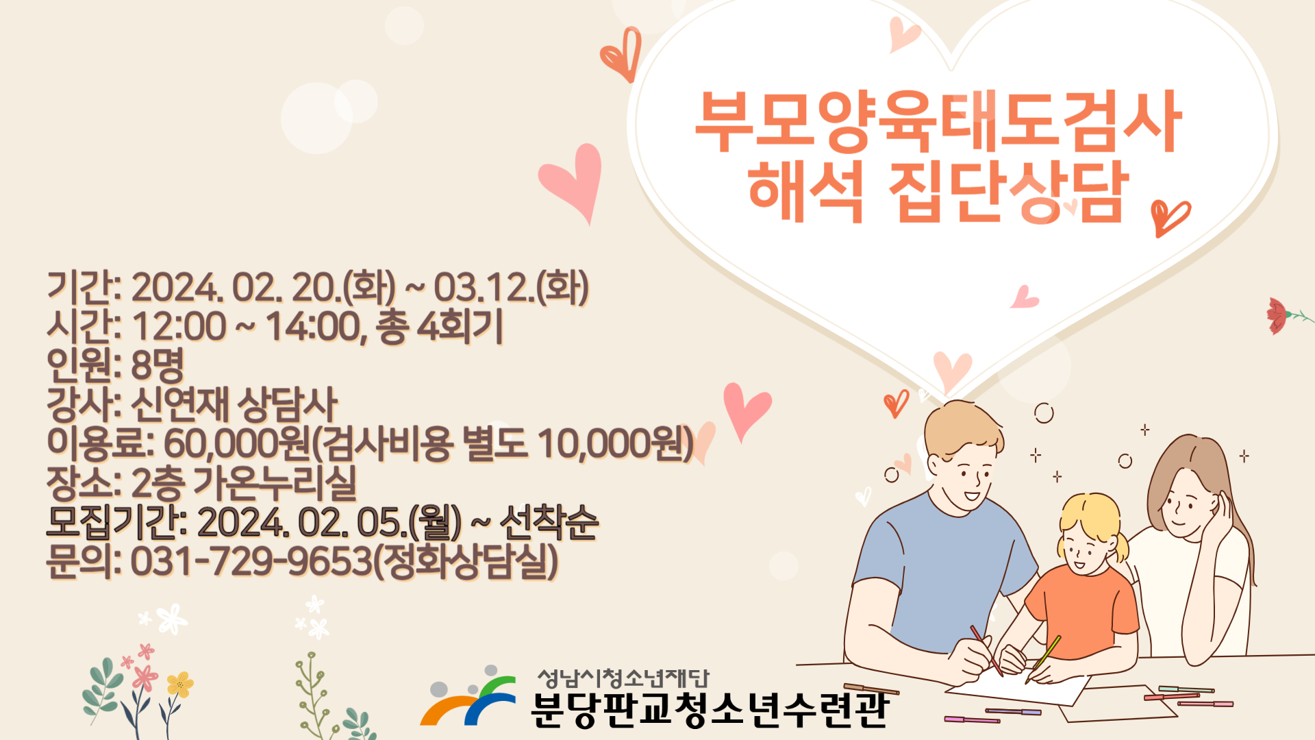 분당판교청소년수련관 [양육태도검사 및 해석 집단상담] 접수 안내