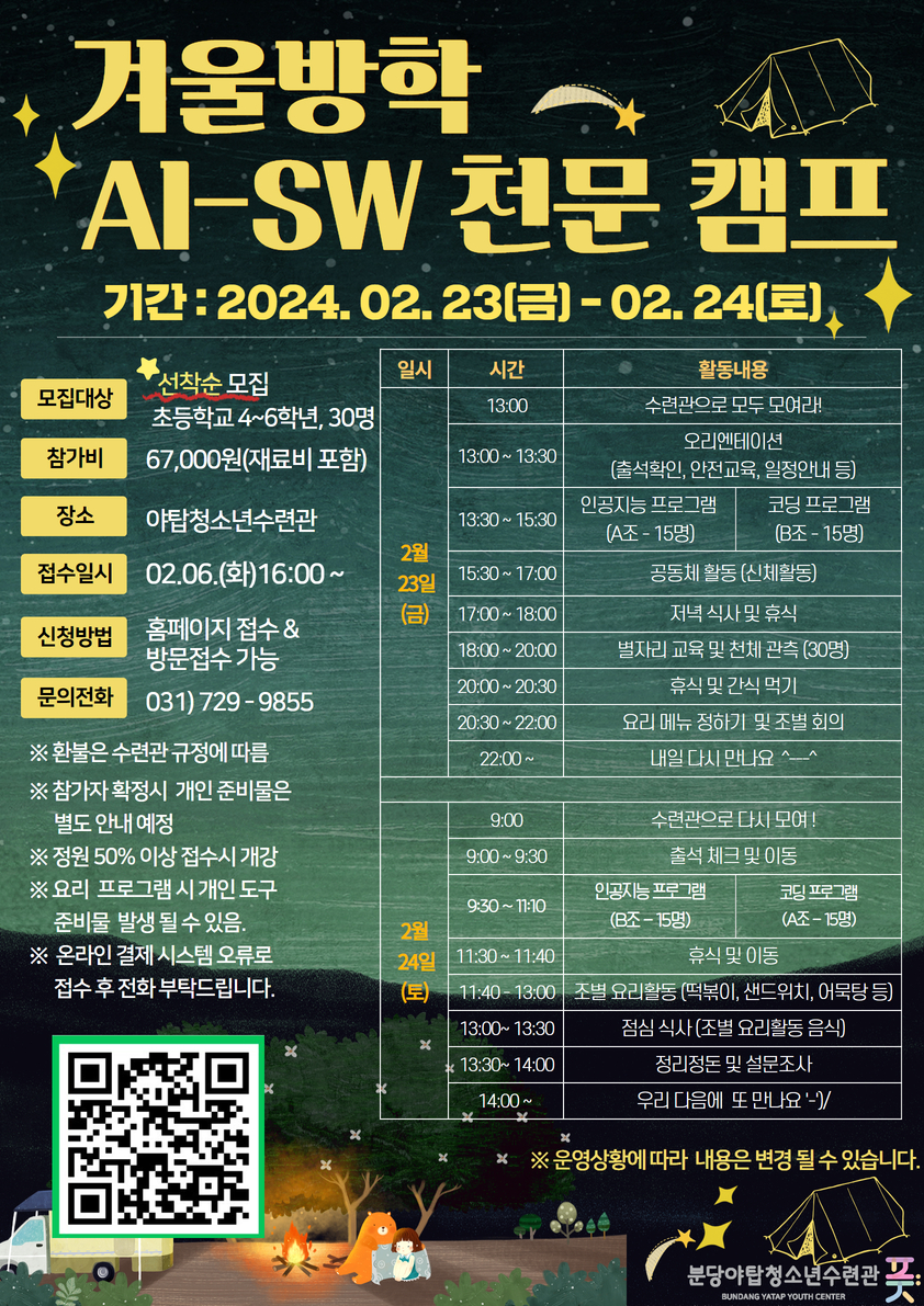 겨울방학「AI-SW 천문 캠프」참가자 모집 안내입니다!
