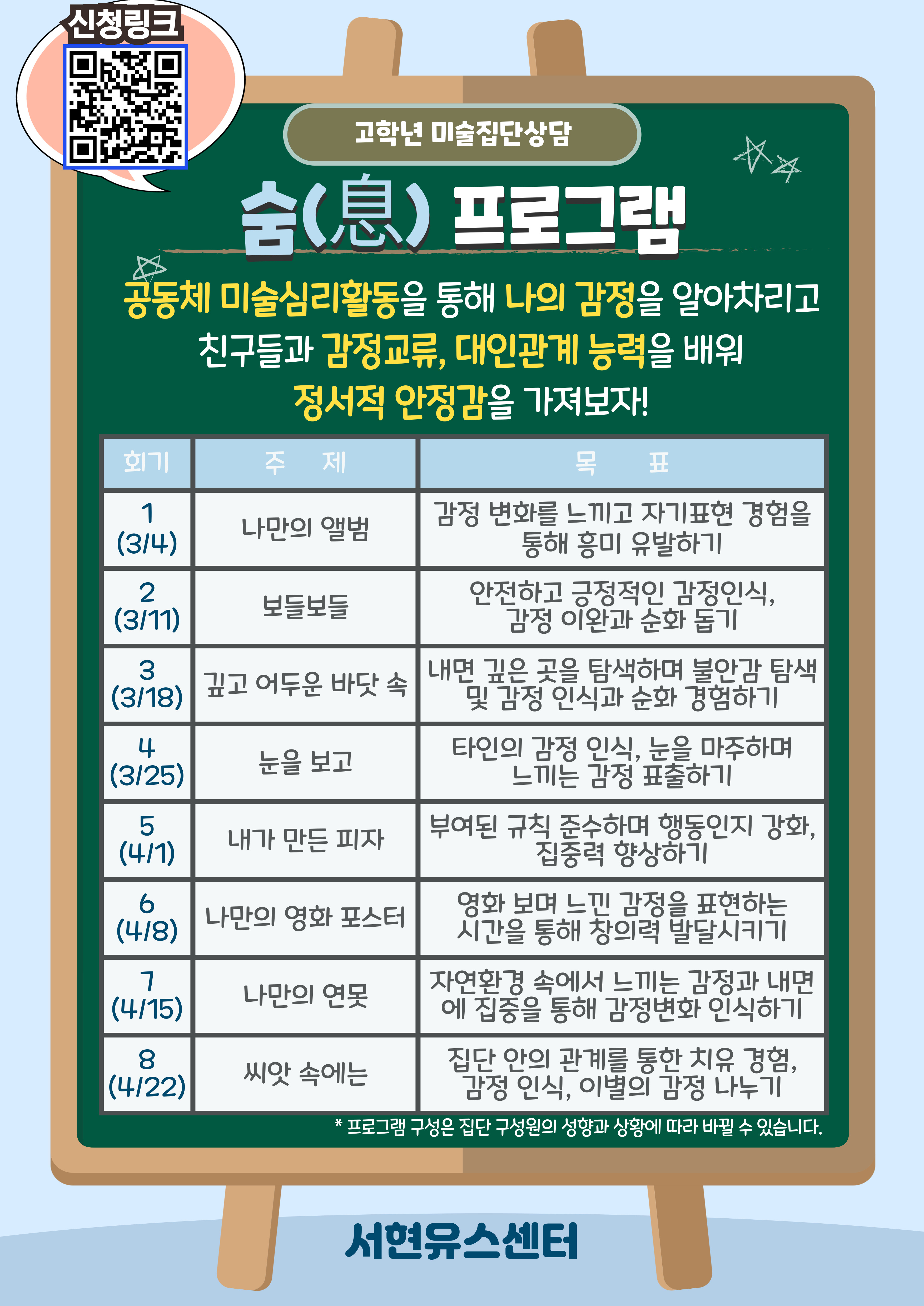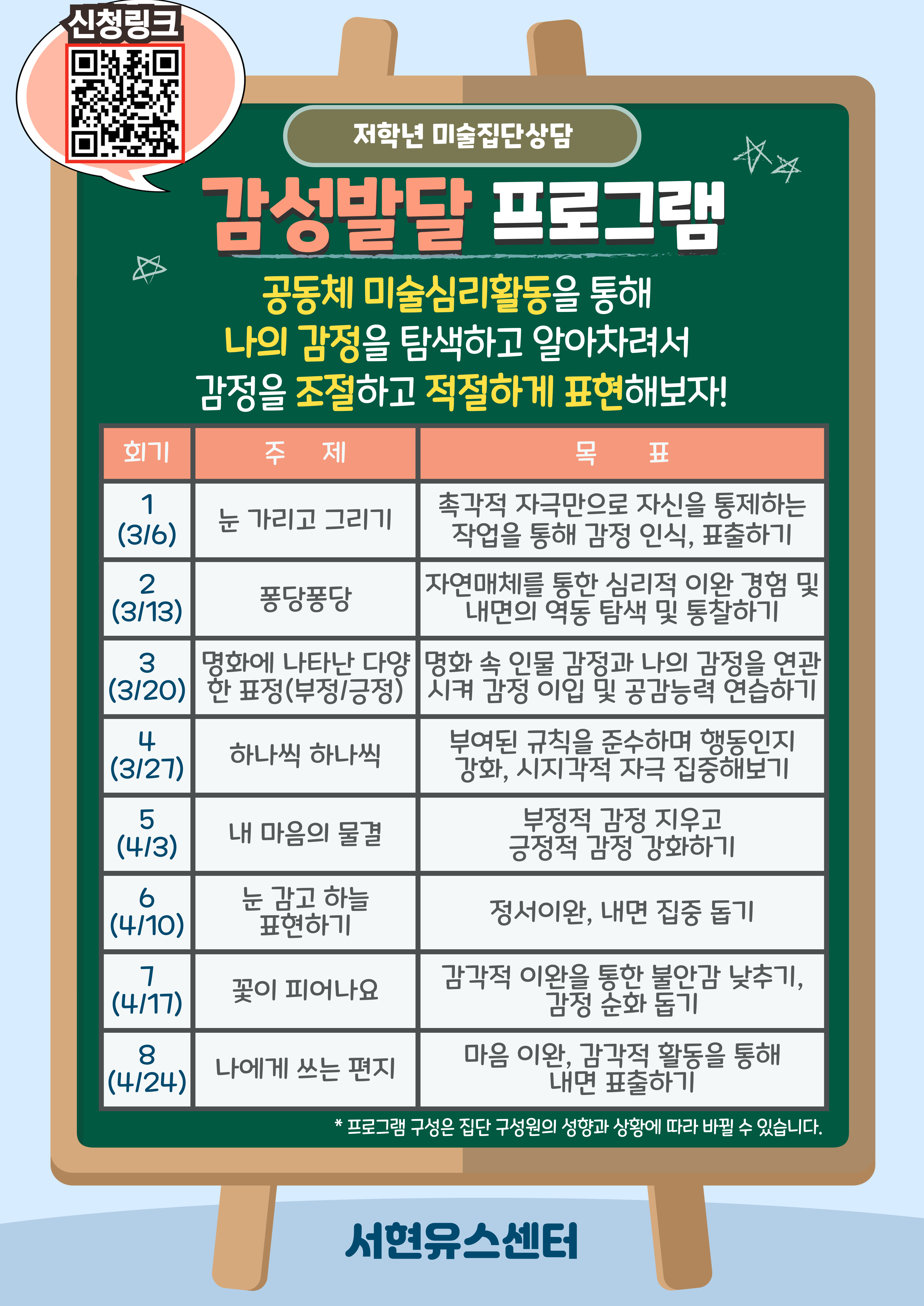 '감정인식 및 표현', 또래 친구들과의 '교류'에 관심이 있는 분들을 위한 2025년 3, 4월 집단상담 프로그램 접수 안내드립니다.