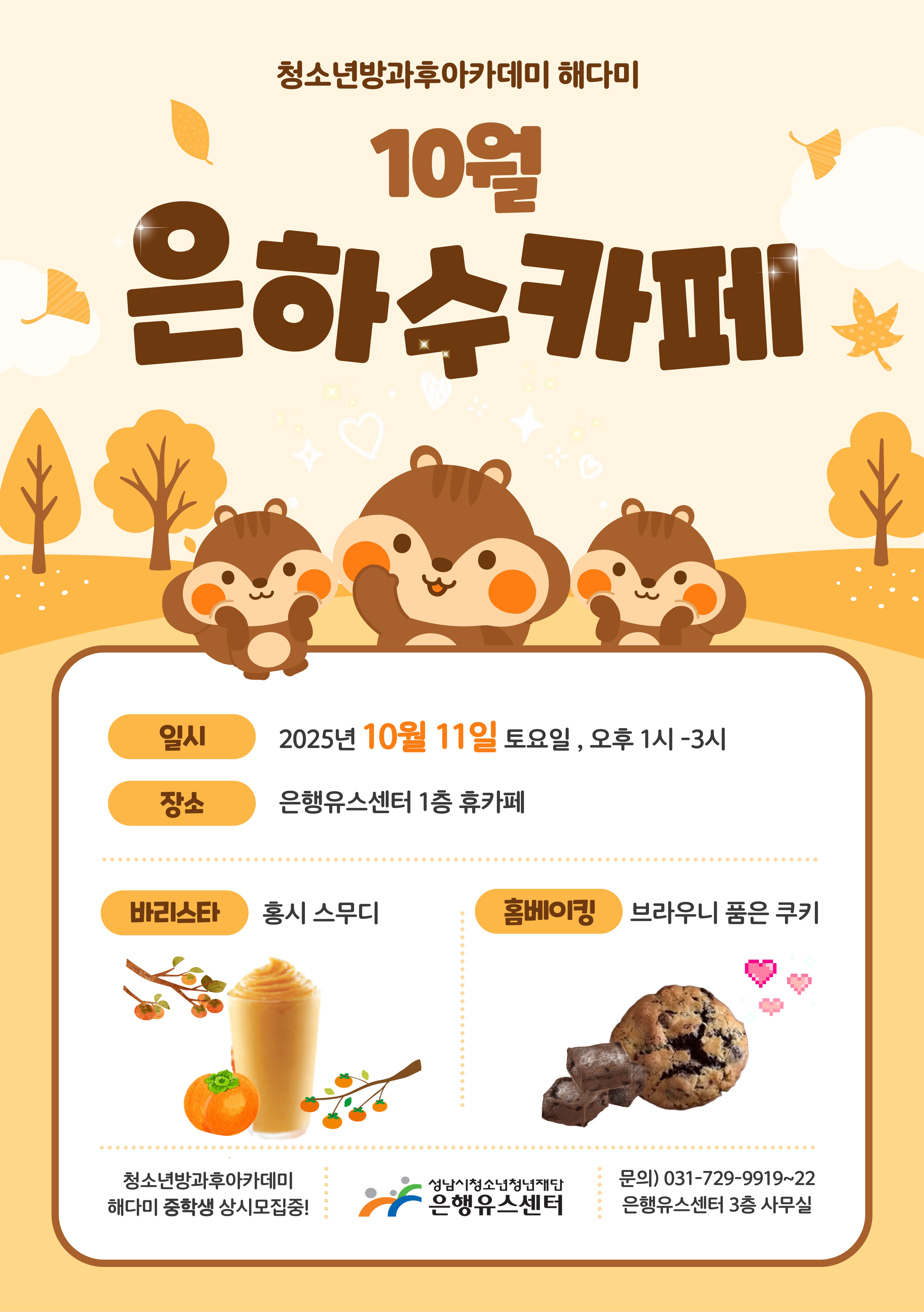 - ★ 이달의 메뉴: 홍시스무디 & 브라우니 품은 쿠키!