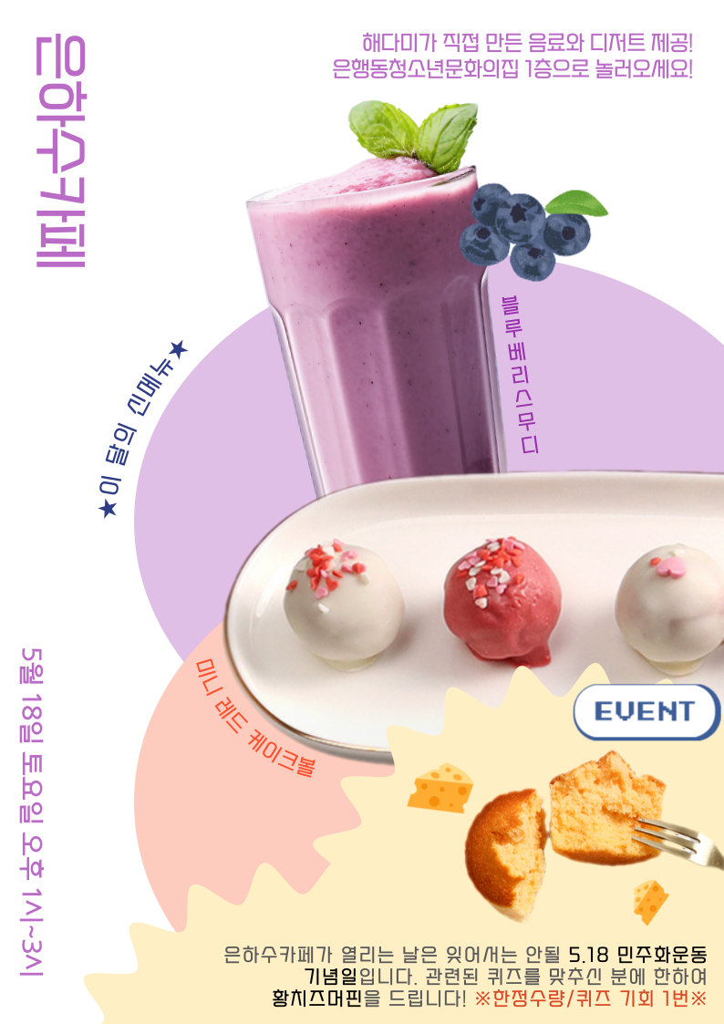 - ★ 이달의 신메뉴 ★ : 블루베리 스무디 & 미니 레드 케이크볼