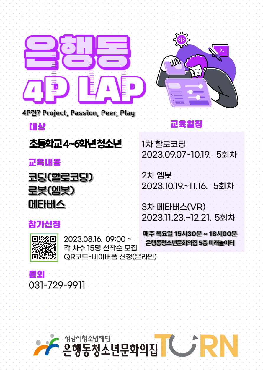 청소년미래교육 4P LAP(코딩, 로봇, 메타버스)교육 참가 청소년 모집