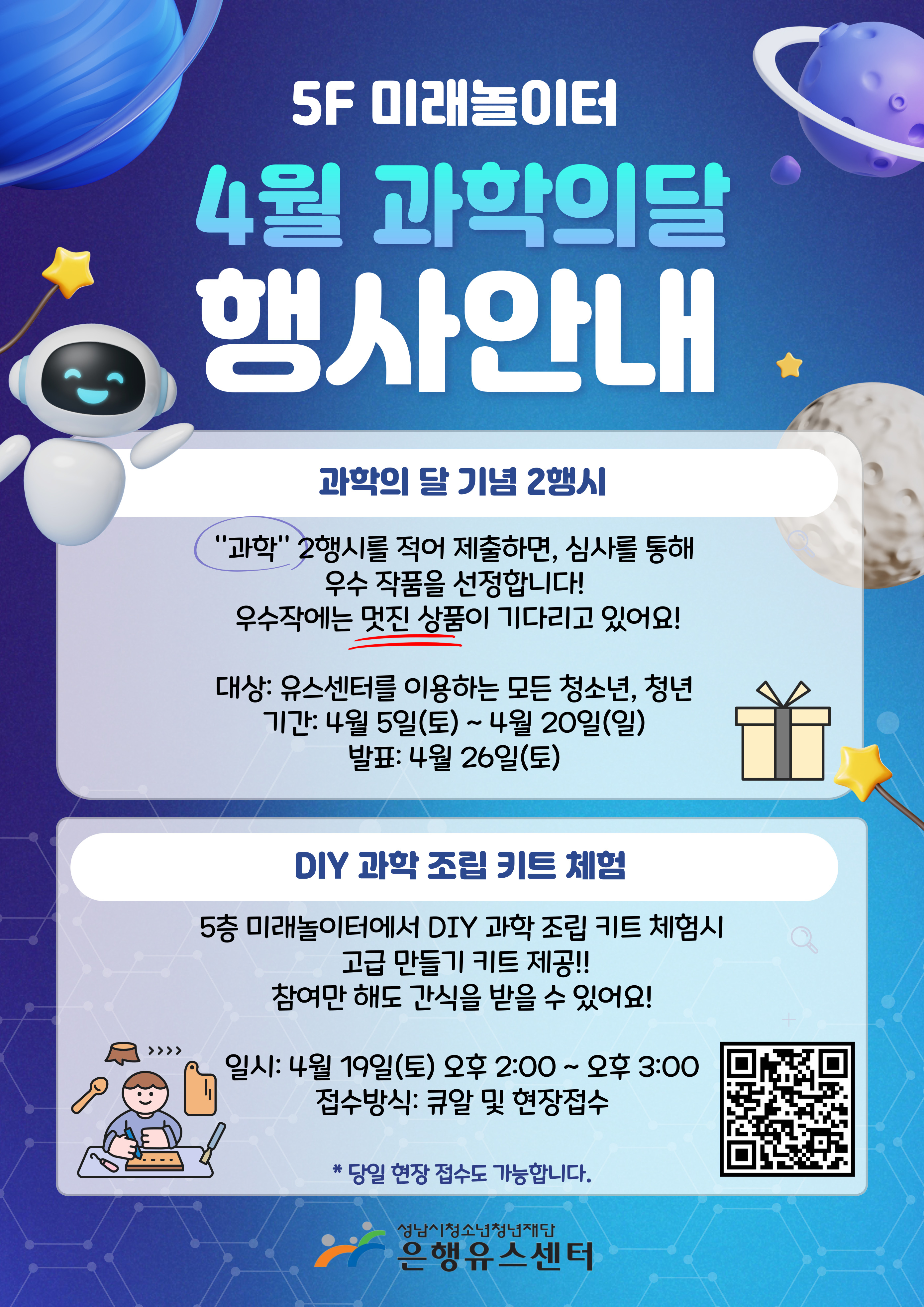 청소년 미래놀이터(5층)에서 준비한 4월 '과학의 달' 맞이 행사!