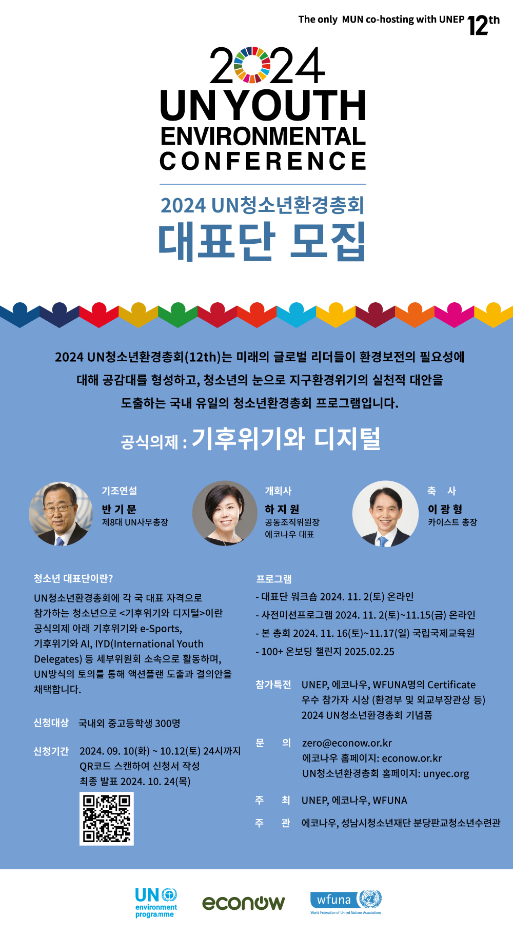 2024 UN청소년환경총회 청소년대표단 모집안내
