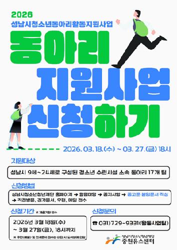 2026년 성남시 청소년동아리활동지원사업