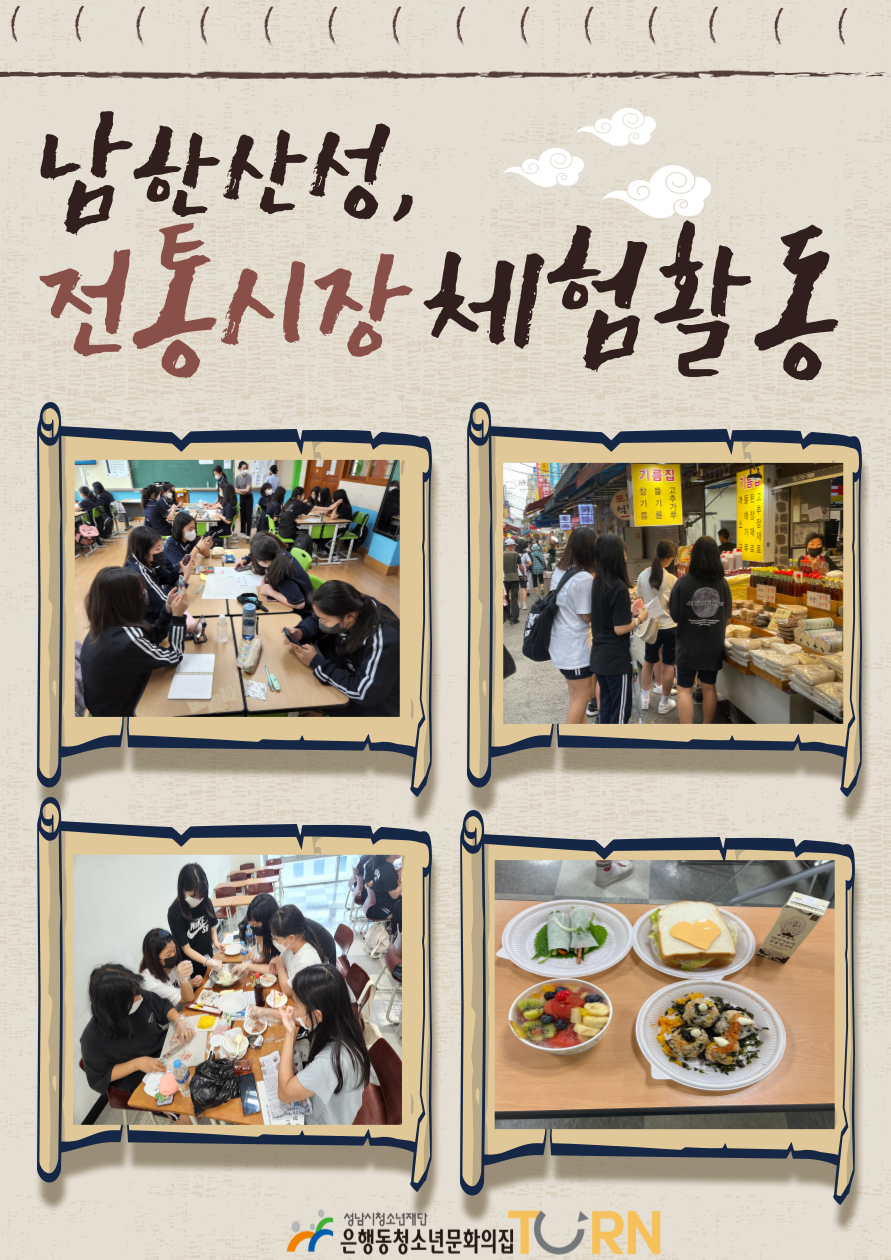 2022년 상원여중 대상으로 남한산성 전통시장과 연계하여 마을교육, 남한산성 시장 장보기 및 요리활동을 진행하였습니다~!