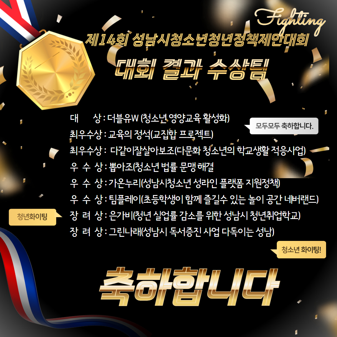 제14회 성남시청소년청년정책제안대회 본선 대회 결과 입니다.