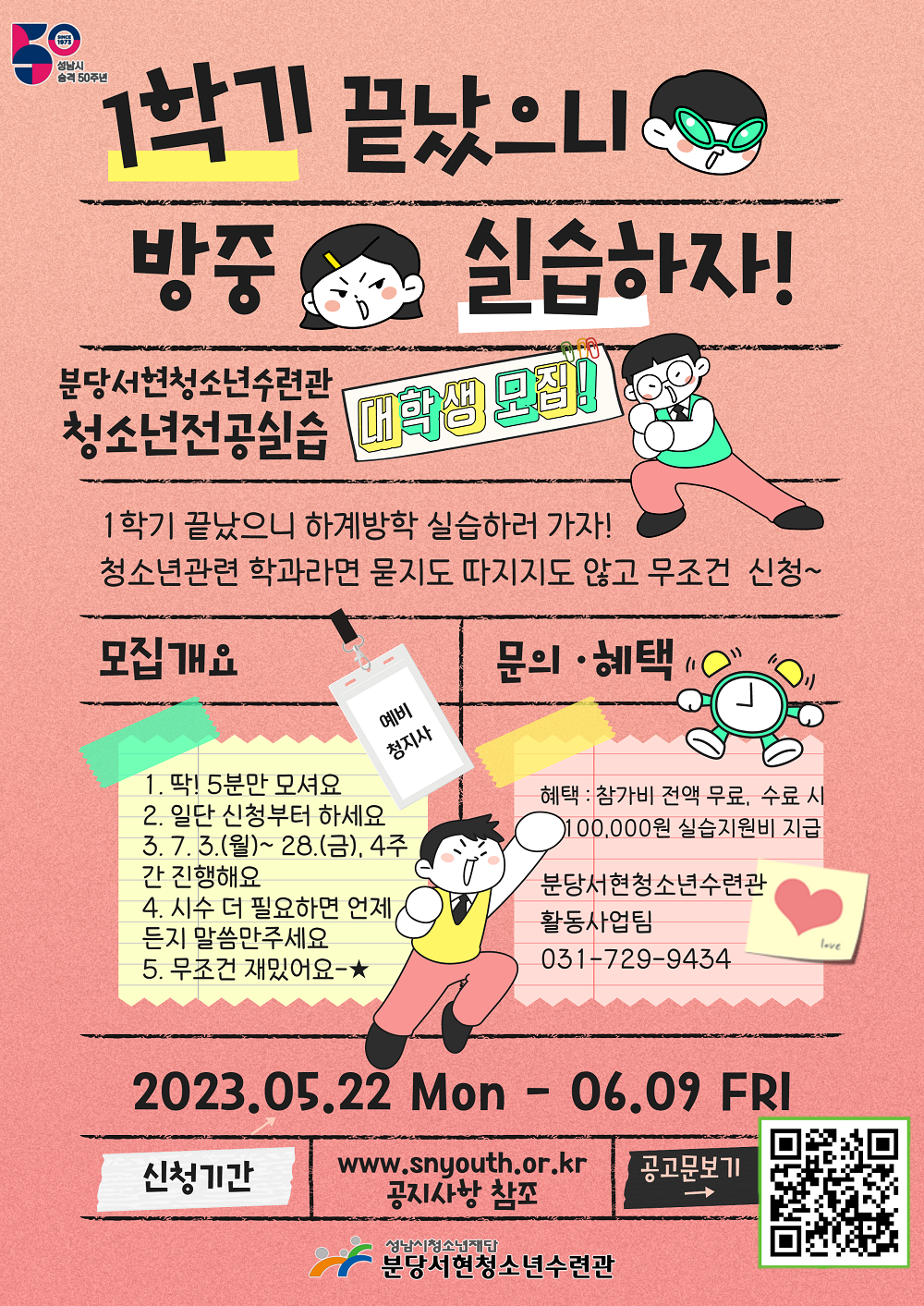 - 실습 의뢰 공문 접수 : 2023. 5. 29.(월) ~ 6. 16.(금)