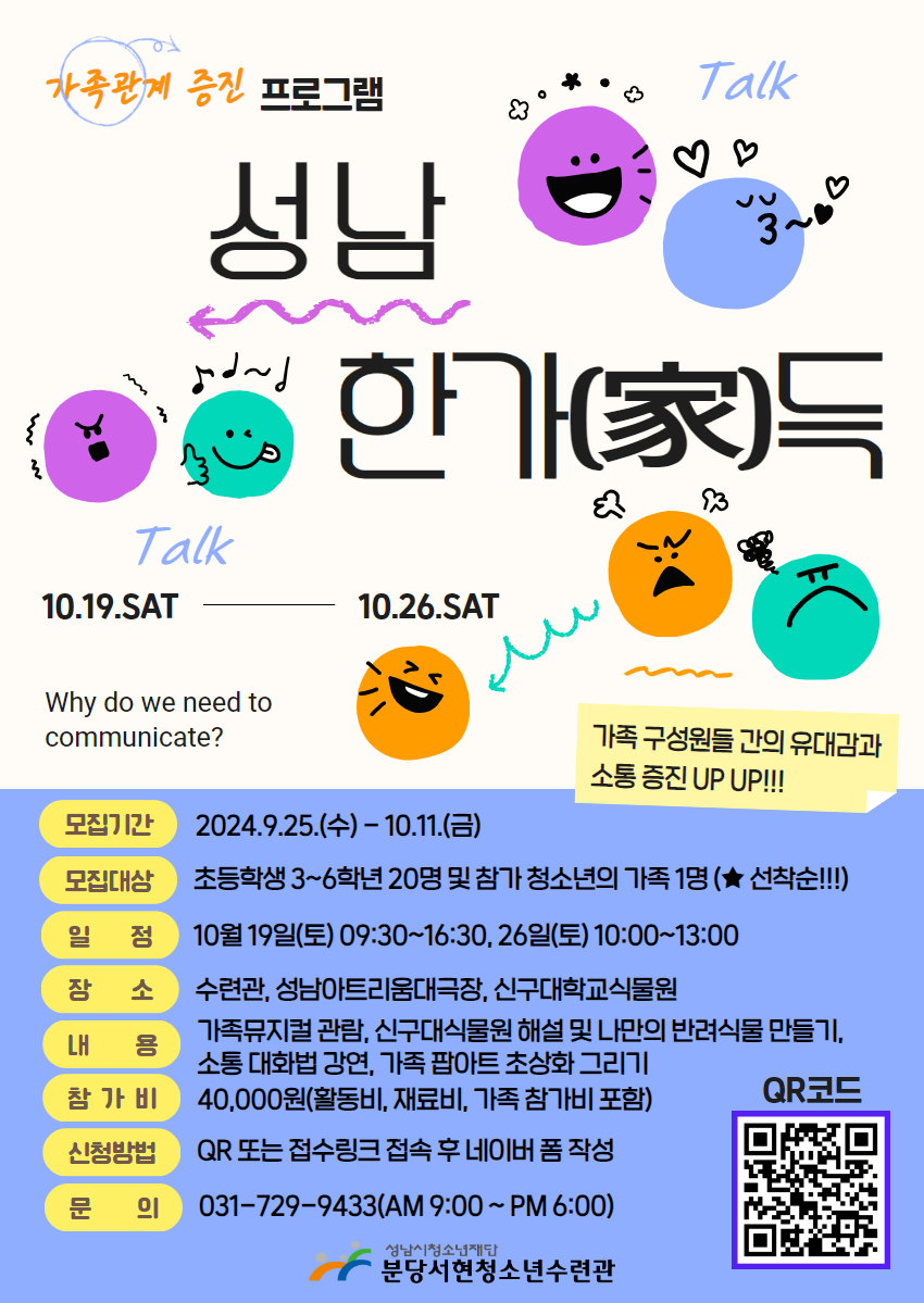 □ 문의: 분당서현청소년수련관 활동사업팀 031-729-9433 (09:00~18:00)