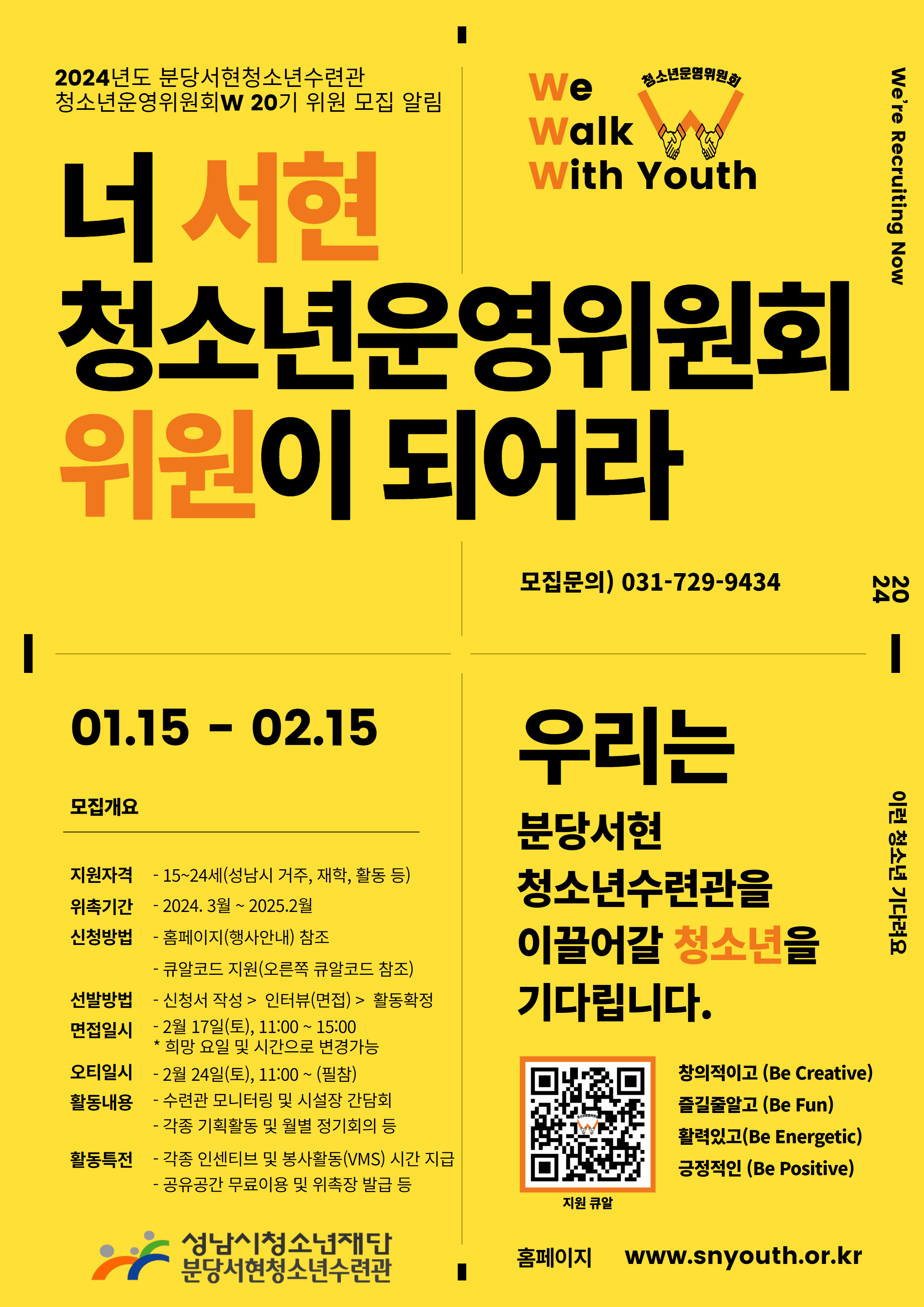 - 2월 17일(토), 시간협의 가능, 분당서현청소년수련관 2층 청소년운영위원회실(참여터)