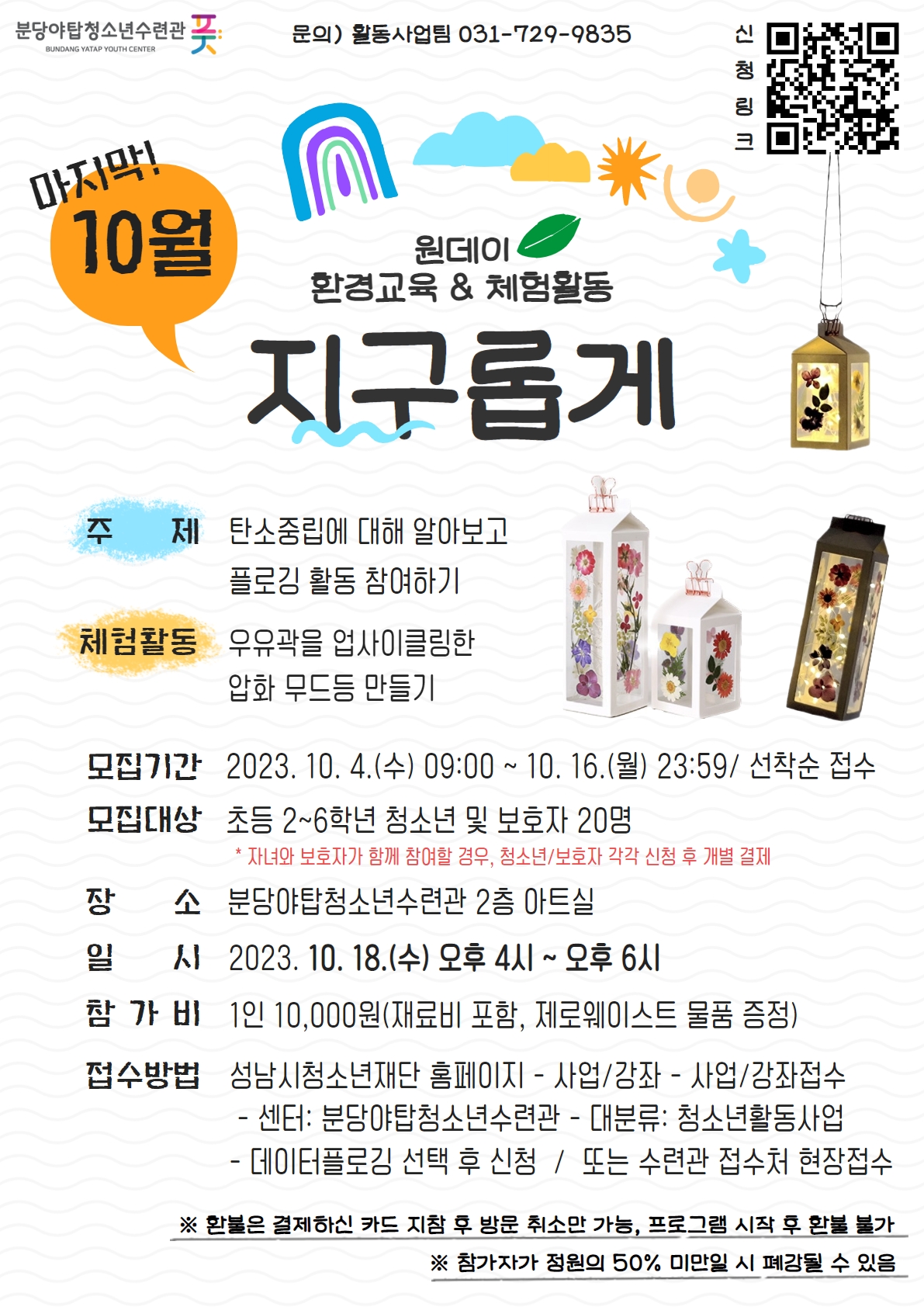 ▶ 문의:  분당야탑청소년수련관 활동사업팀 031-729-9835