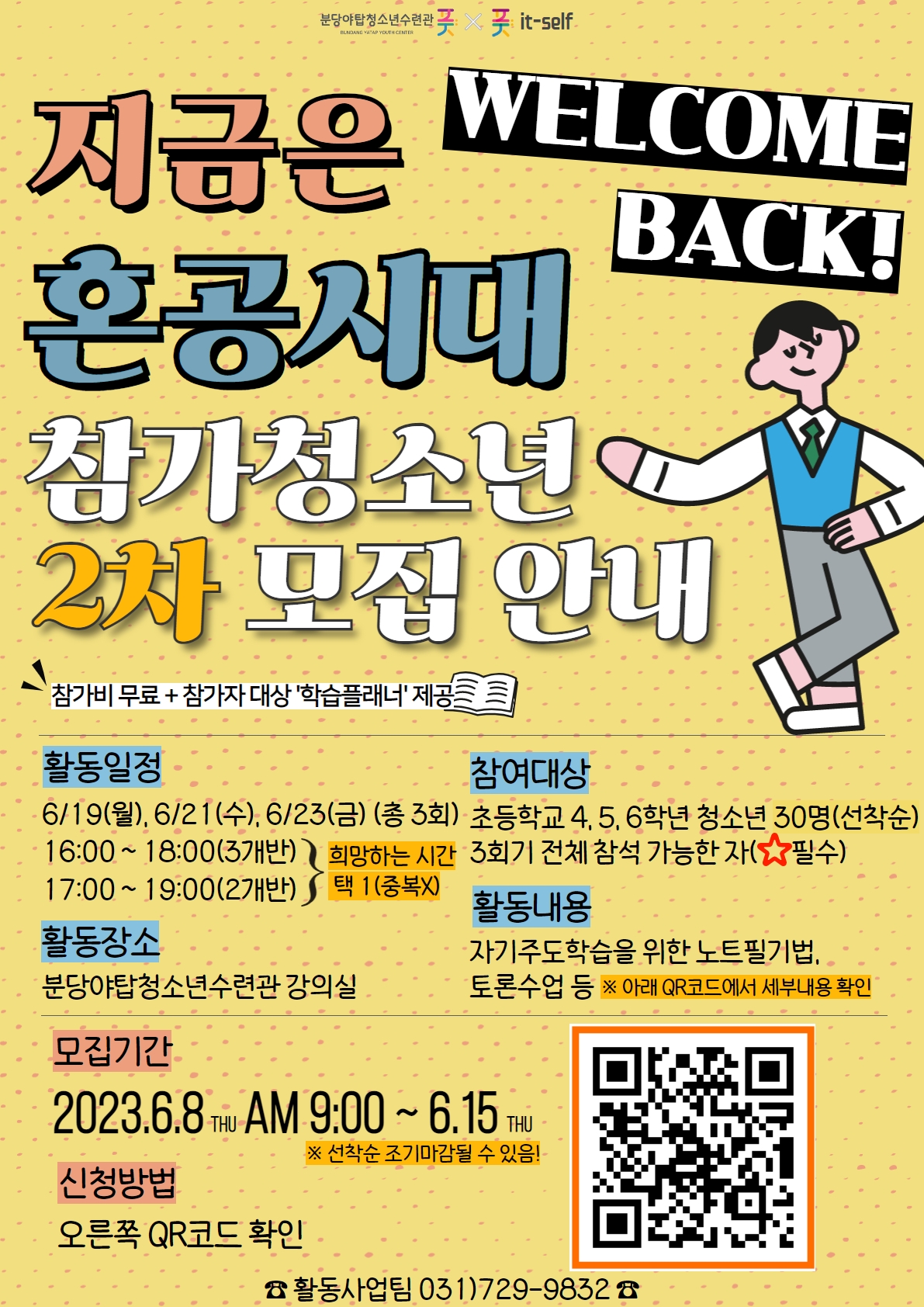 ▶ 관련문의 분당야탑청소년수련관 활동사업팀 ☎ 031)729-9832