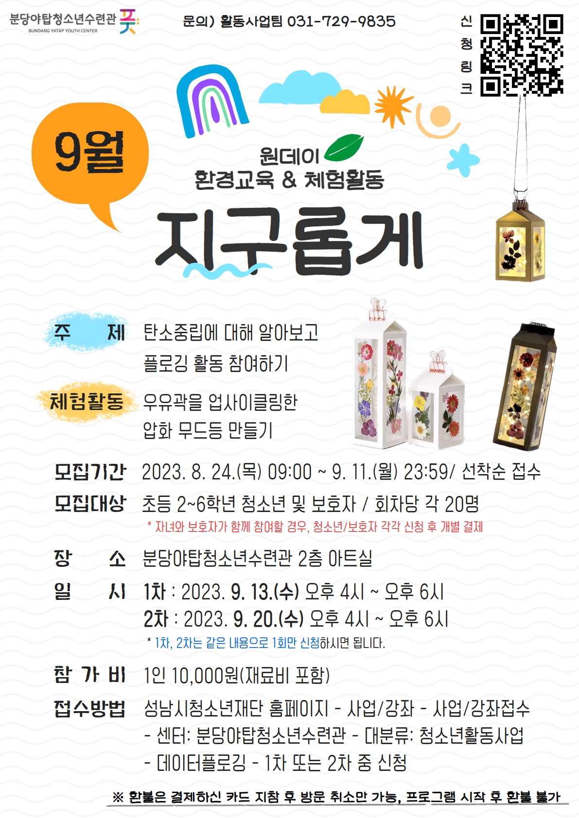 ▶ 문의: 분당야탑청소년수련관 활동사업팀 031-729-9835
