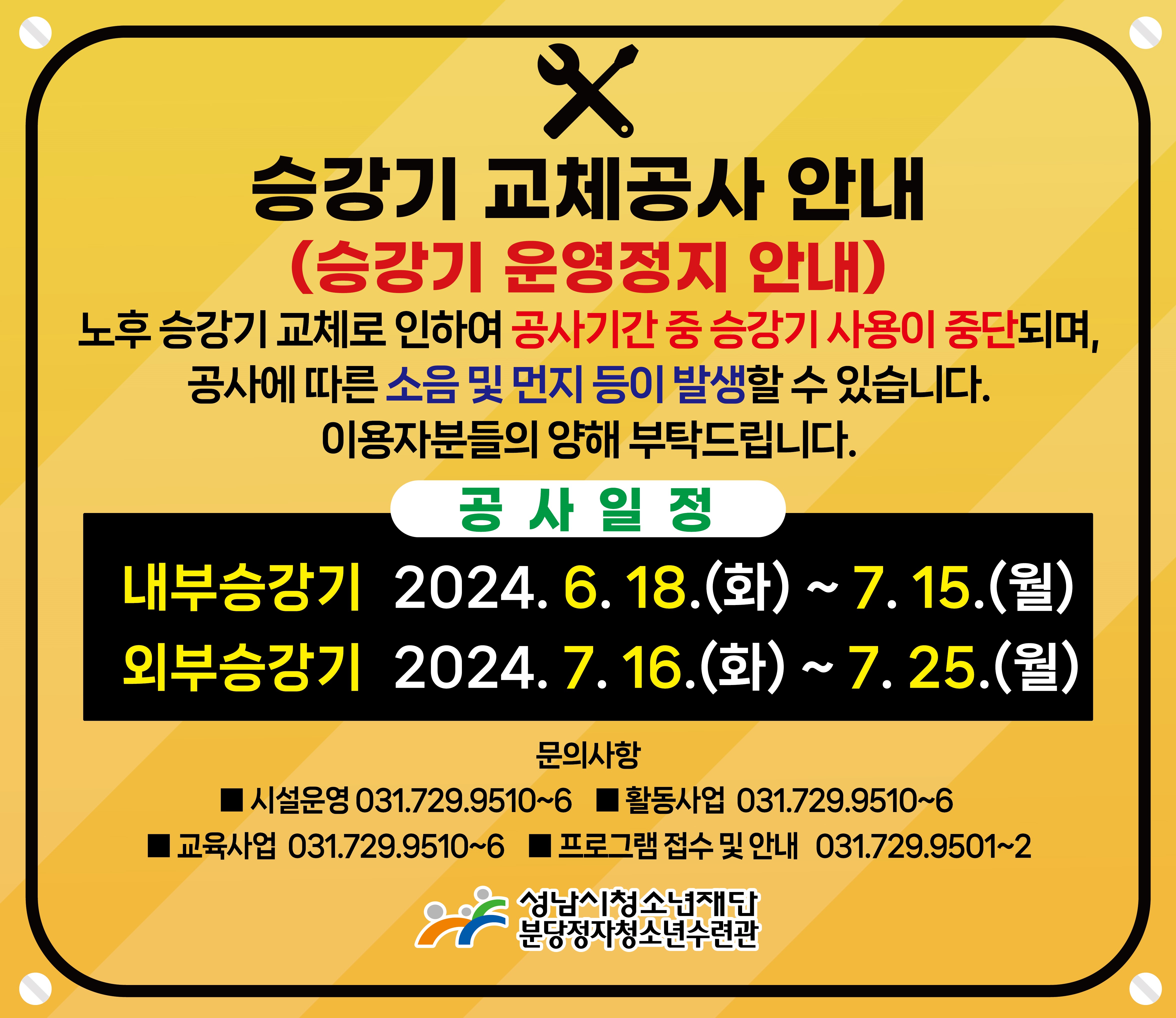 분당정자청소년수련관 노후승강기 교체공사 안내