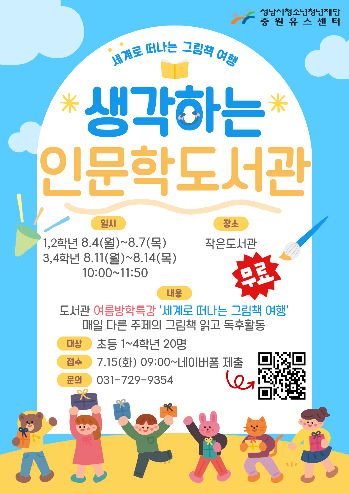 '생각하는 인문학 도서관' 여름방학특강 프로그램 참가자 모집