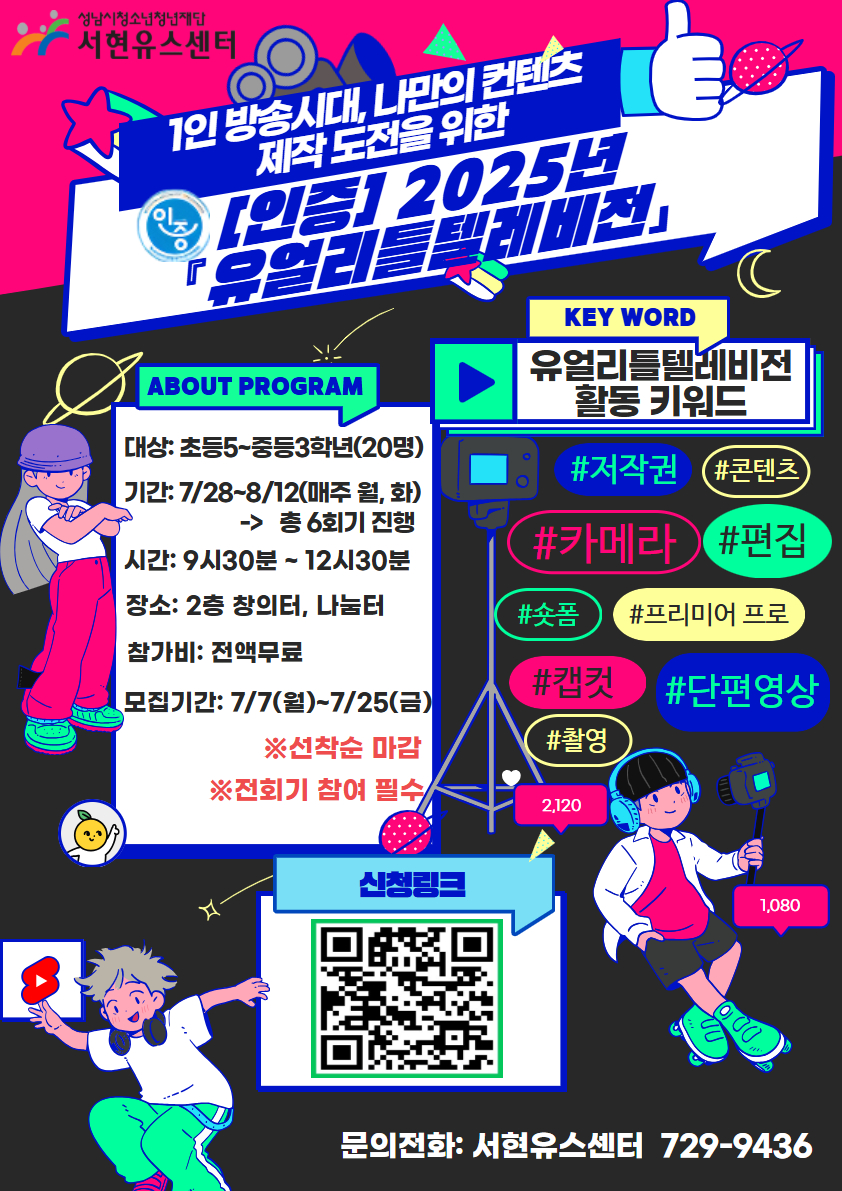 『1인 방송시대, 나만의 컨텐츠 제작 도전을 위한_(인증) 2025년『유얼리틀텔레비전』프로그램 참가자 모집』