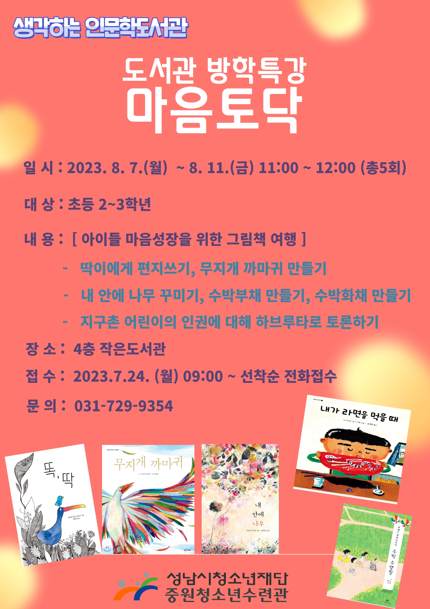 <도서관 방학특강 "마음토닥" 모집 안내>