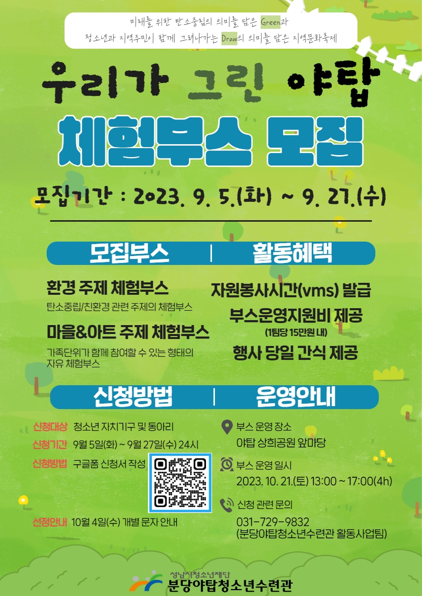 [모집] 2023년 지역커뮤니티축제&청소년문화제 『우리가 그린 야탑』 체험부스 모집