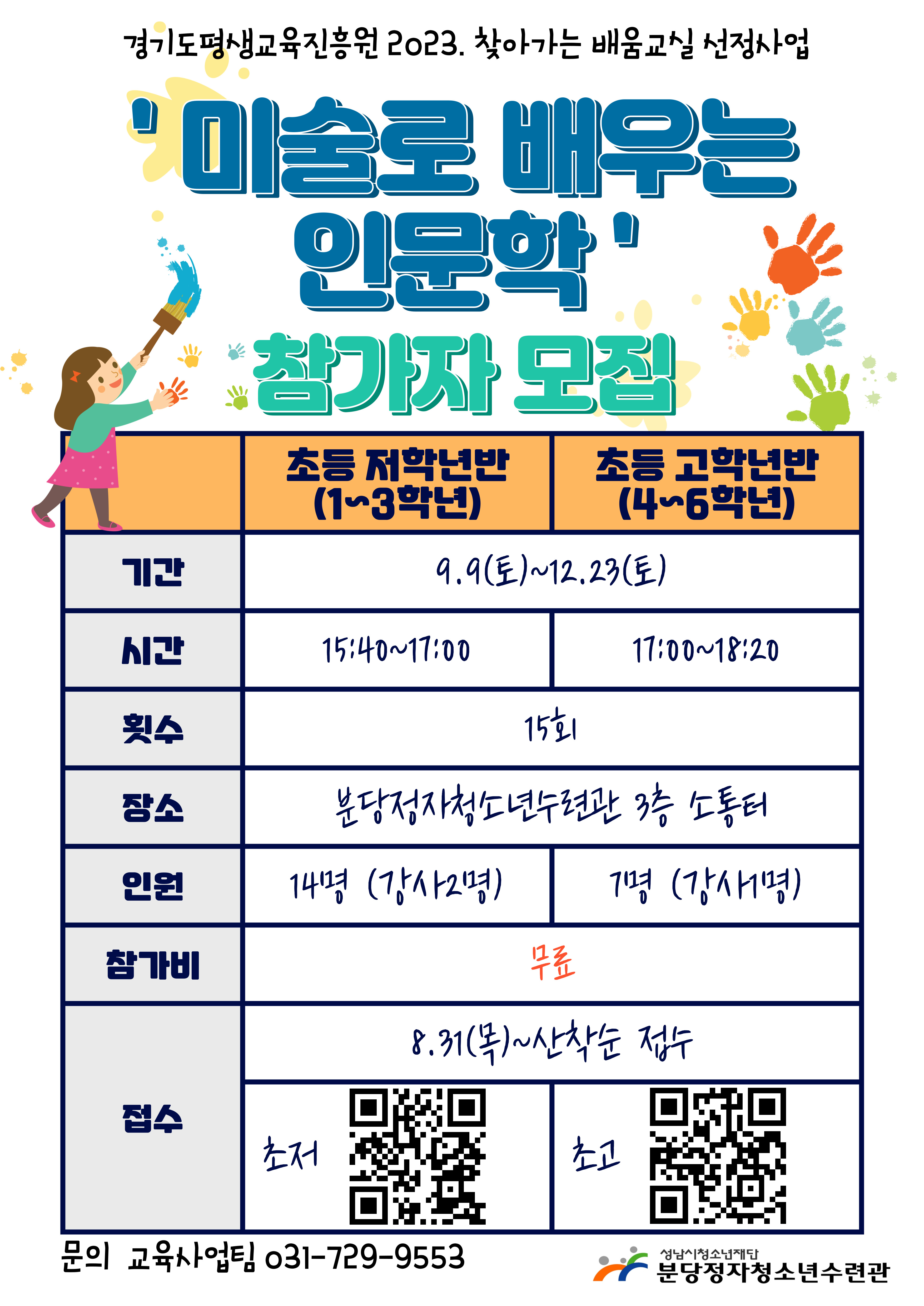 2023년 경기도 찾아가는 배움교실 「미술로 배우는 인문학」 참가자 모집