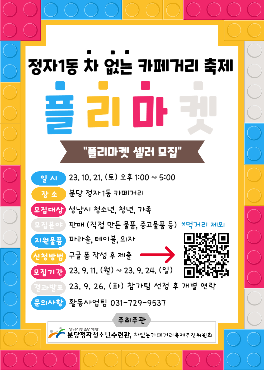 [정자1동 차 없는 카페거리 축제 플리마켓 셀러 모집]