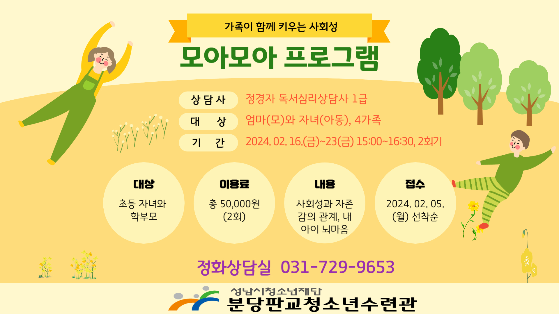 접수: 2024. 02. 05.(월)부터 분당판교청소년수련관 교육사업팀 031-729-9653