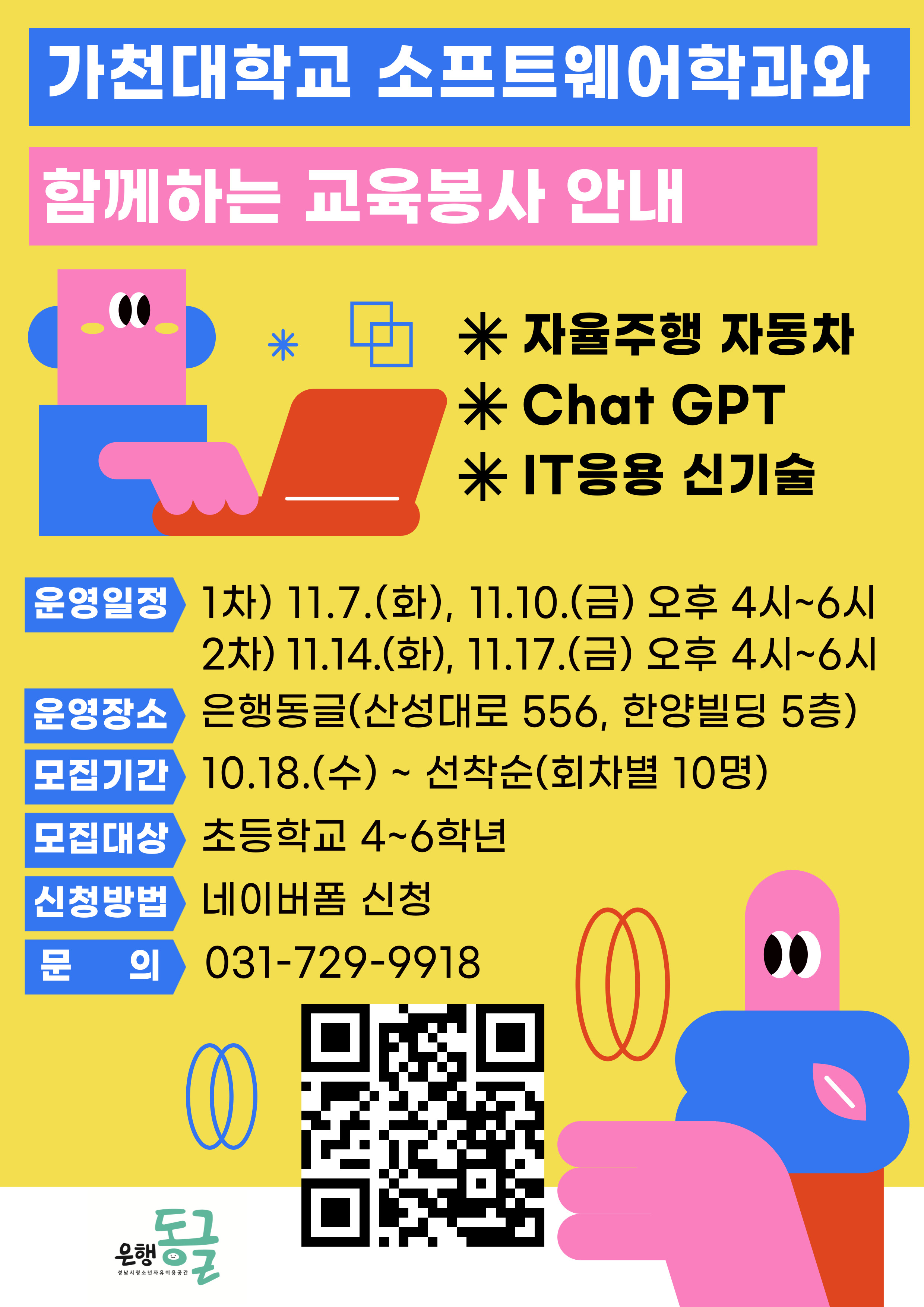 은행동글에서 가천대학교 소프트웨어학과 함께하는 미래교육 프로그램을 운영합니다.