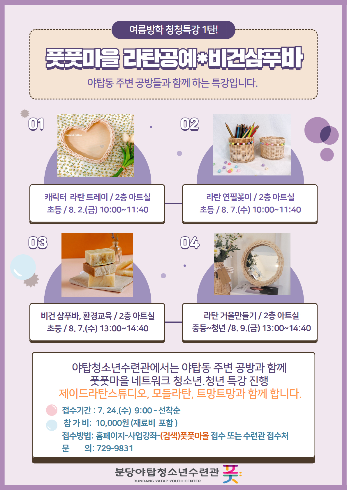 - 일시장소: 2024. 8. 7.(수) 10:00~11:40, 야탑청소년수련관 2층 아트실