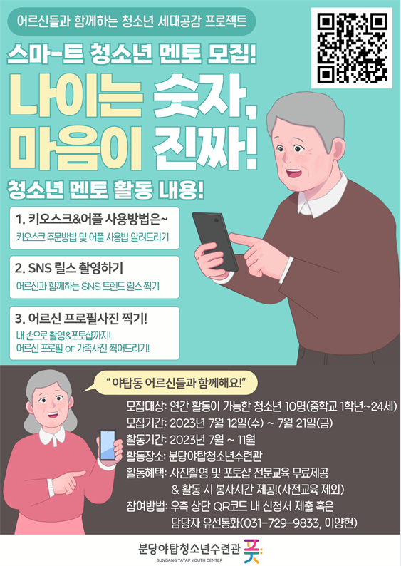 ○ 참여방법: 모집 포스터 내 QR코드 신청서 제출 혹은 담당자 유선통화(031-729-9833, 활동사업팀 이양현)