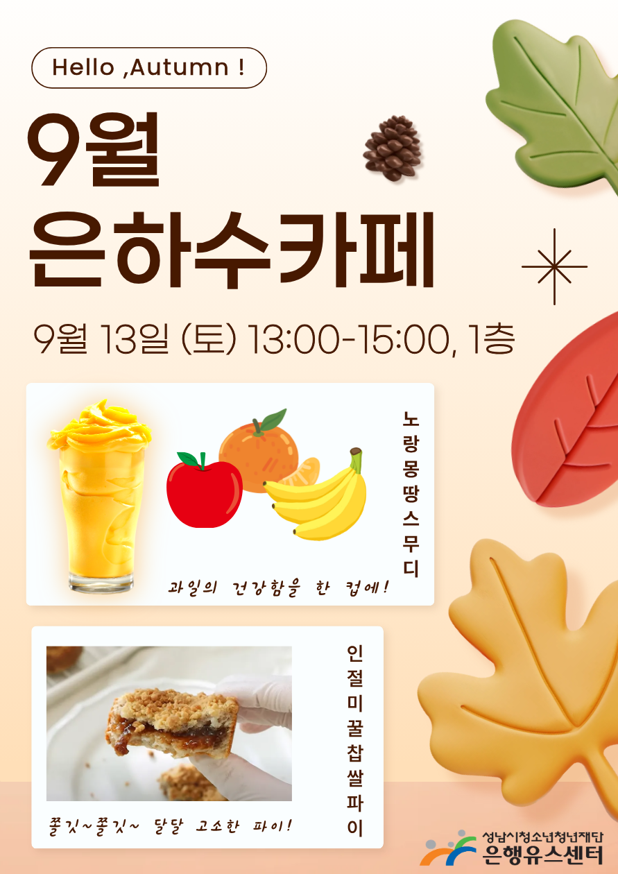 - 내용: 매월 셋째주마다 신메뉴와 함께 운영되는 '은하수 카페' 드시러 은행유스센터로 오세요~!