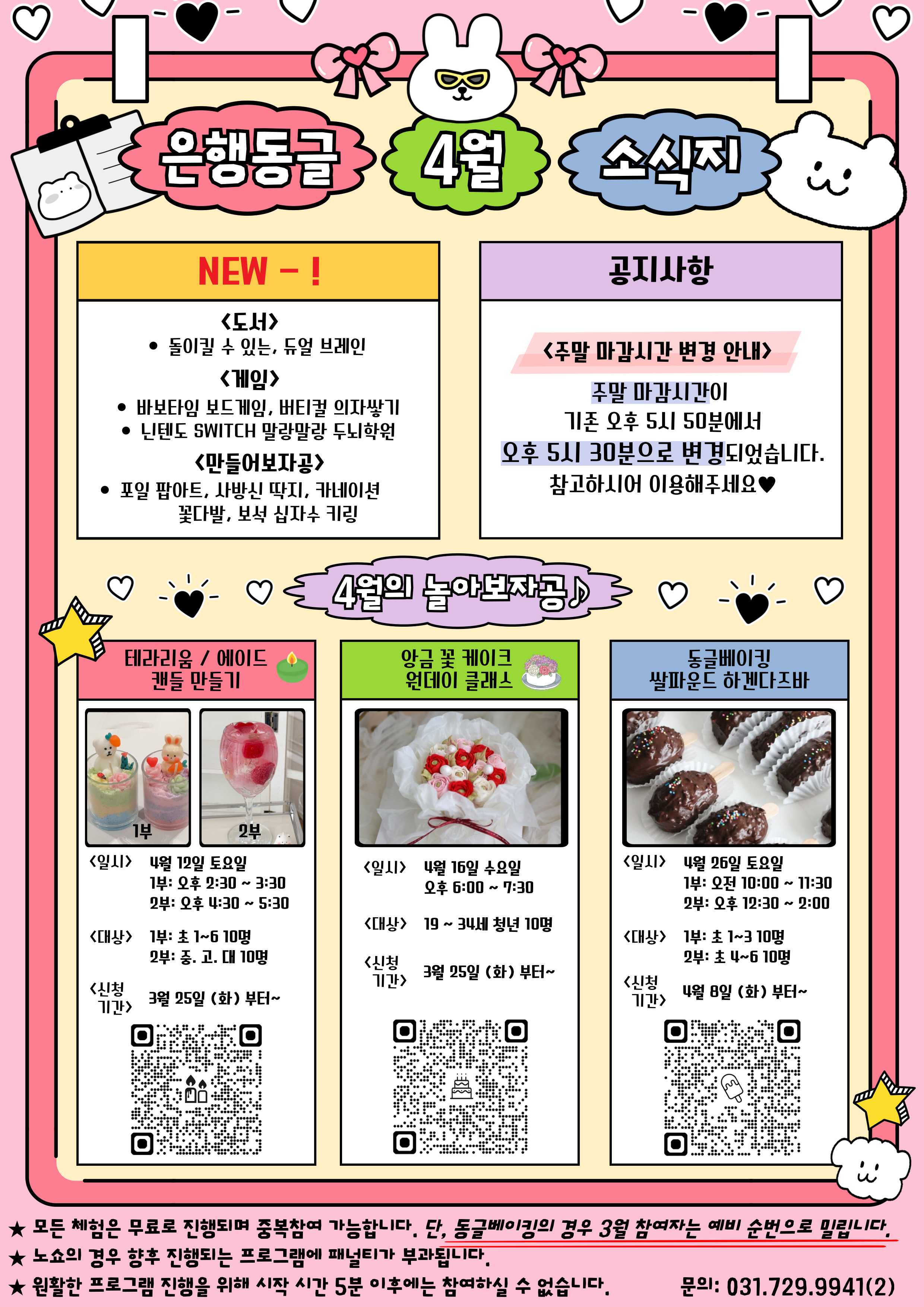 안녕하세요 은행동글입니다. <4월> 소식지 전달드립니다!