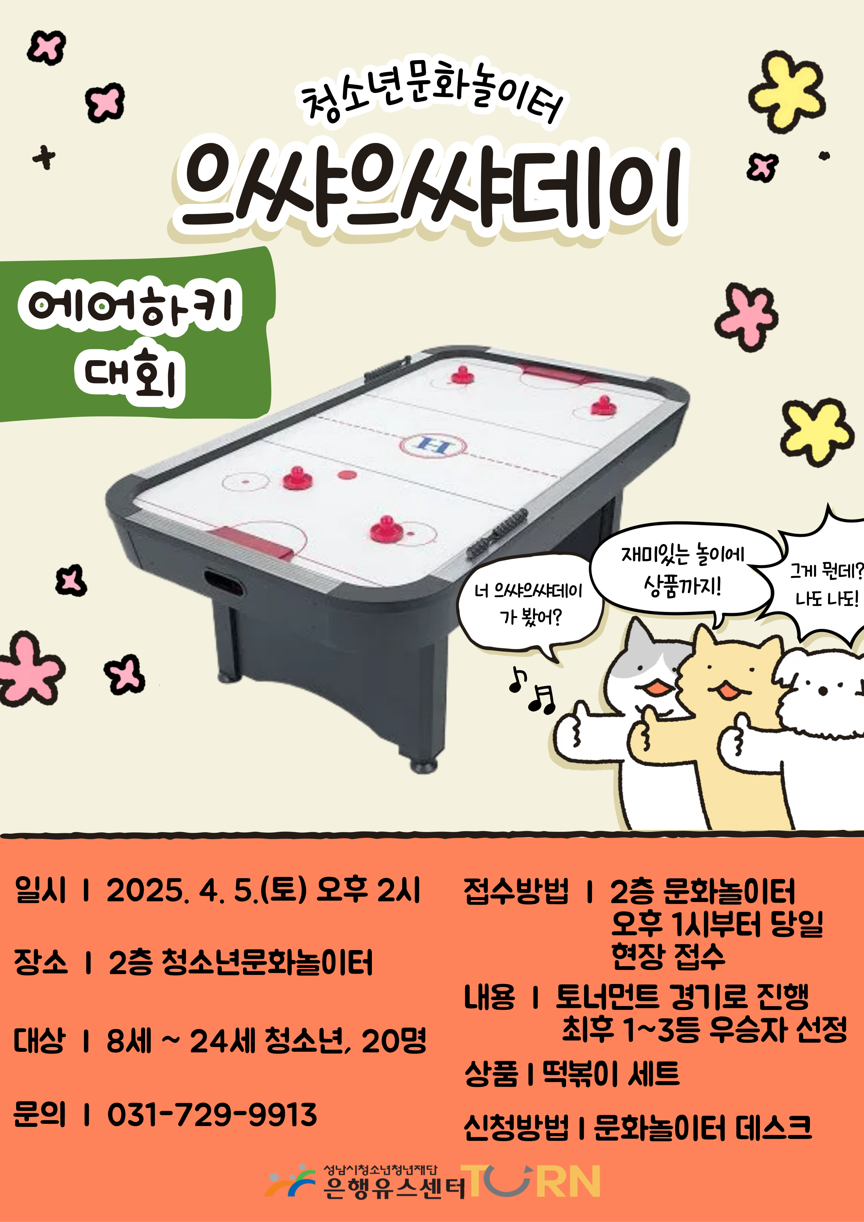 이번달 '으샤으샤데이'는 [에어하키 토너먼트 대회] 입니다:)