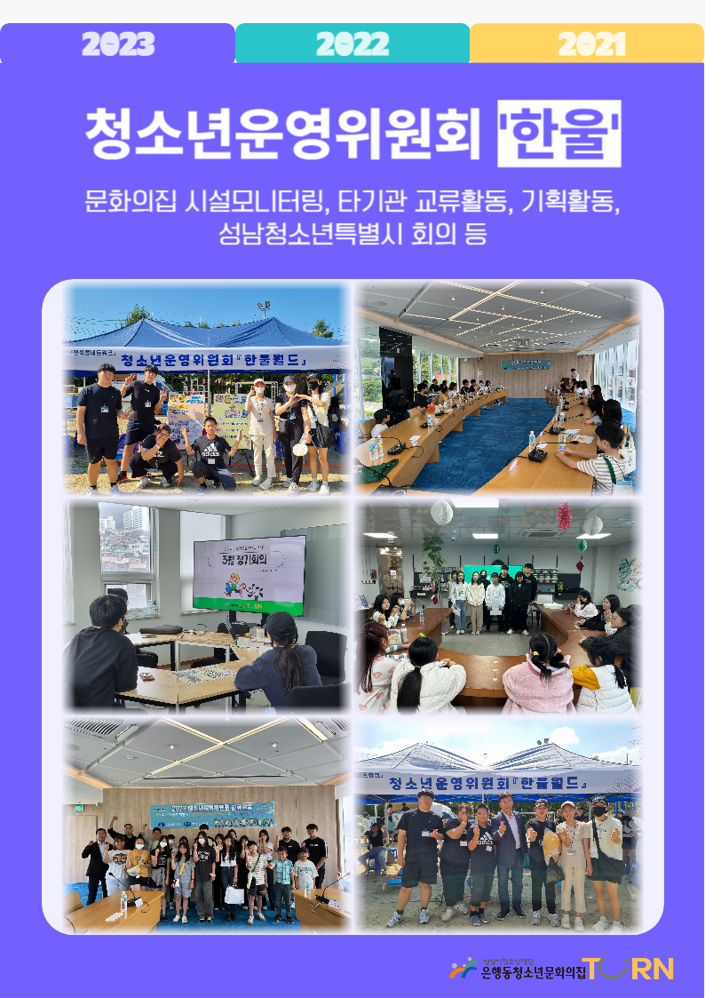 문화의집 시설모니터링, 타기관 교류활동, 기획활동, 성남청소년특별시 회의 등