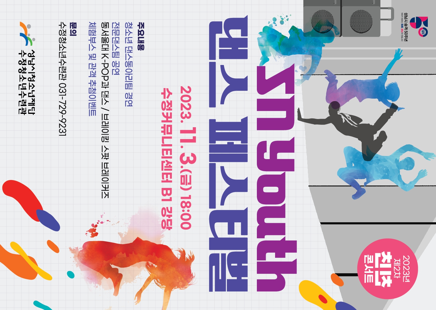 (재)성남시청소년재단 수정청소년수련관에서는 청소년 댄스동아리들의 끼와 열정을 펼칠 수 있는 <SN Youth 댄스페스티벌>을 개최합니다. 여러분의 많은 관심과 참여 부탁드립니다.
