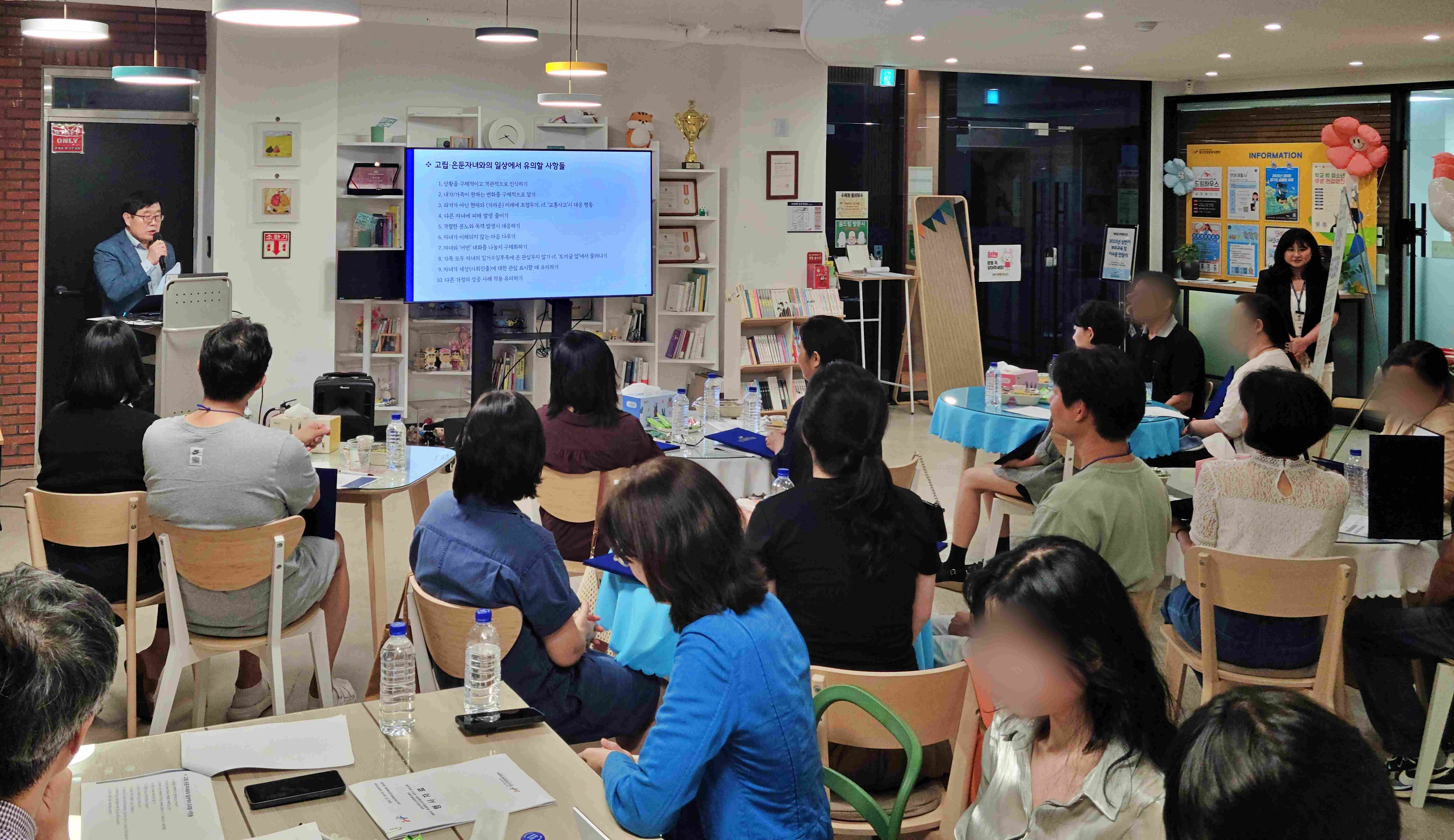 이번 교육은 고립·은둔 청소년 자녀를 둔 15명의 부모가 참여해 자녀에 대한 이해를 넓히고 실질적인 소통 방법을 배우는 데 목적을 두고, 같은 어려움을 겪는 부모님들끼리 공감과 위로를 받는 시간으로 구성되었다.