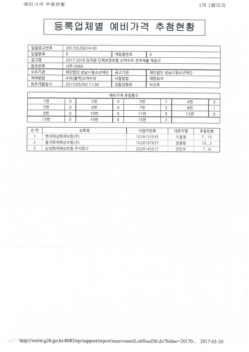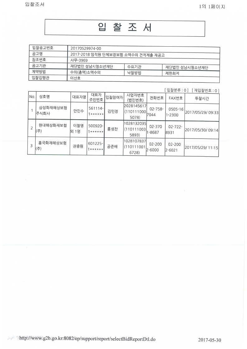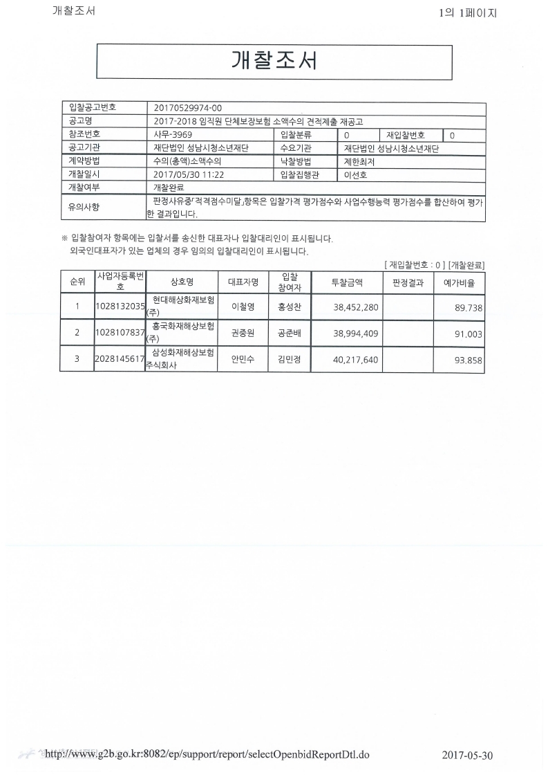 가. 견적건명: 2017-2018 임직원 단체보장보험 소액수의 견적제출 재공고