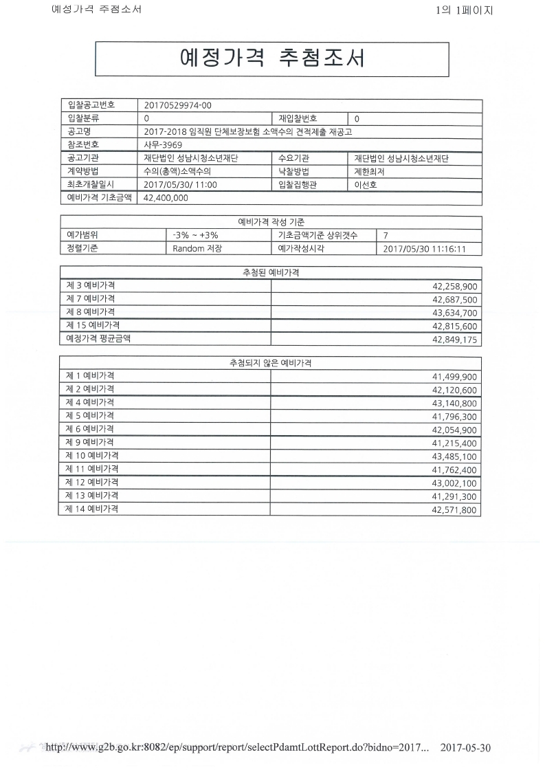 2. 예정가격 추첨조서 및 예비가격 추첨현황 각1부. 끝.