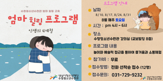 - 접수 문의: 031-729-9232 수정청소년수련관 활동사업팀
